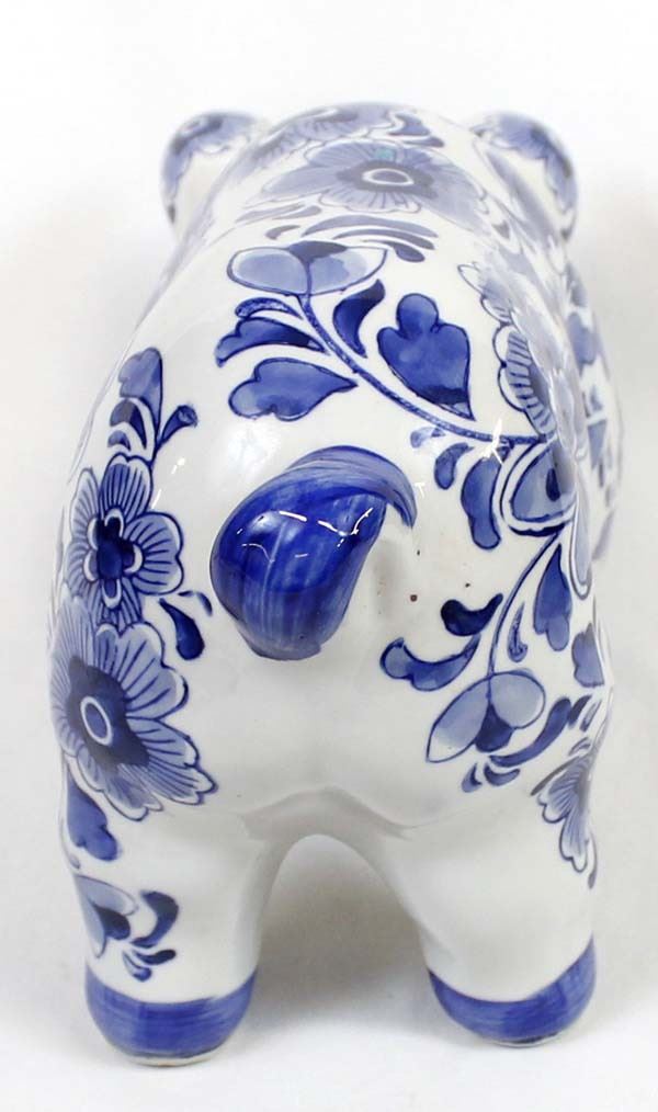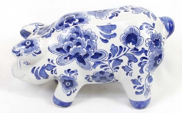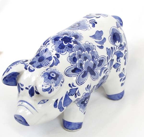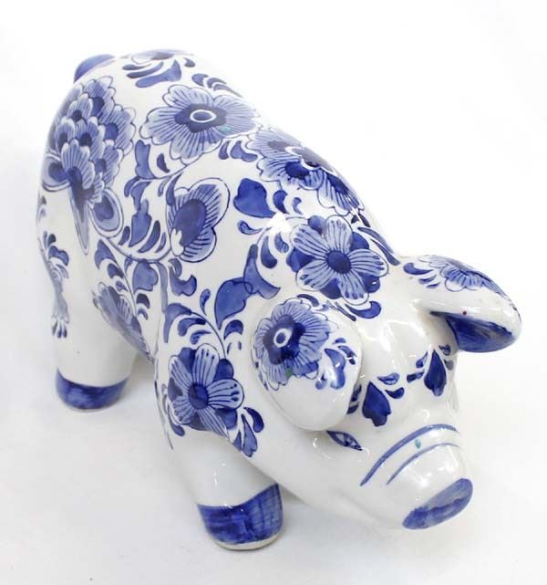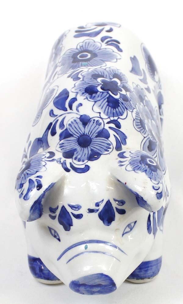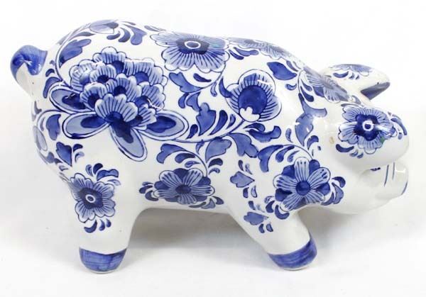 Ceramic Blue & White Pig. This fellow measures 8'' x 12''.