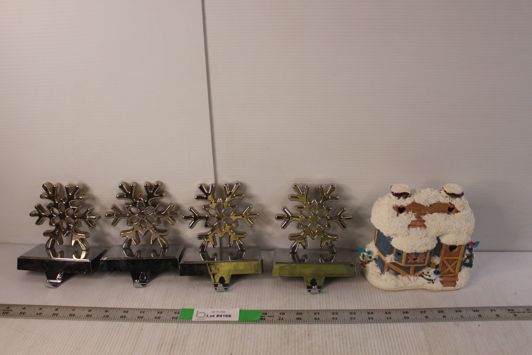 Ceramic Christmas Candle Cover 6" Tall, (4) Snowflake Stocking Hooks