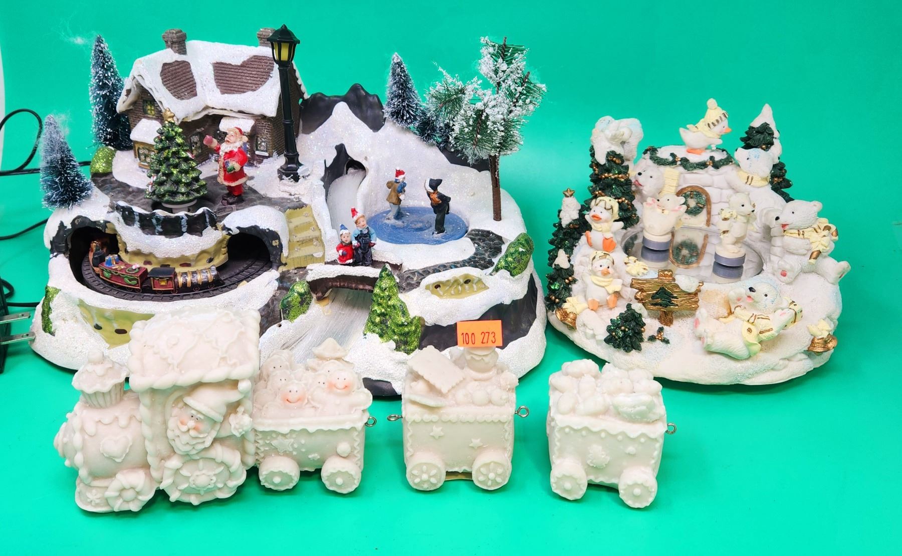 Ceramic Christmas Decor w/ Musical Moving Skating Rink, Train, & Village Scene