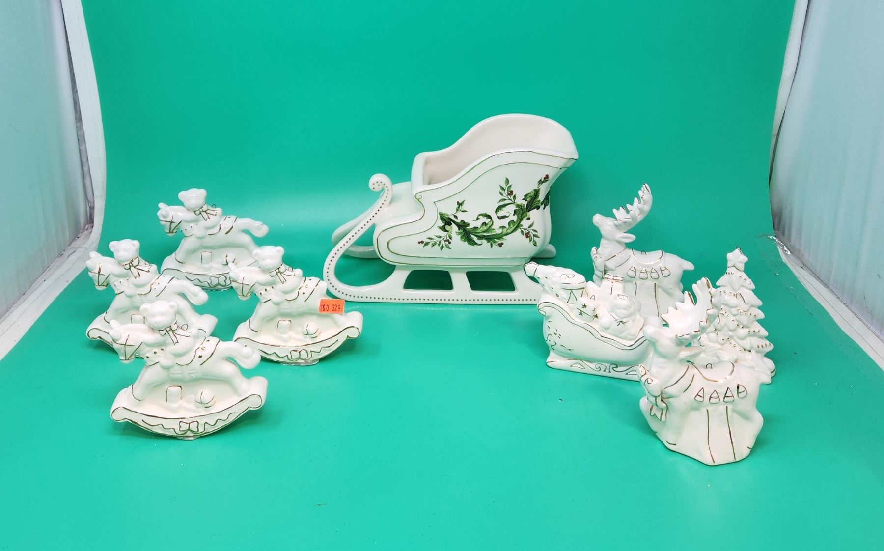 Ceramic Christmas Figurines w/ Sleighs, Bears on Rocking Horses, & More
