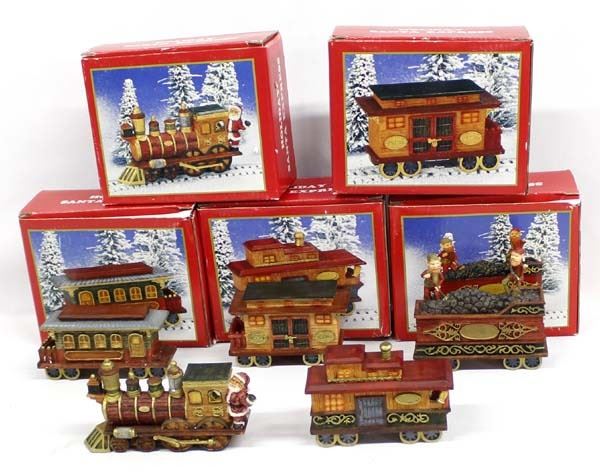 Ceramic Christmas Model Train Set, 5 models each measure 3'' X 3'' X 2''
