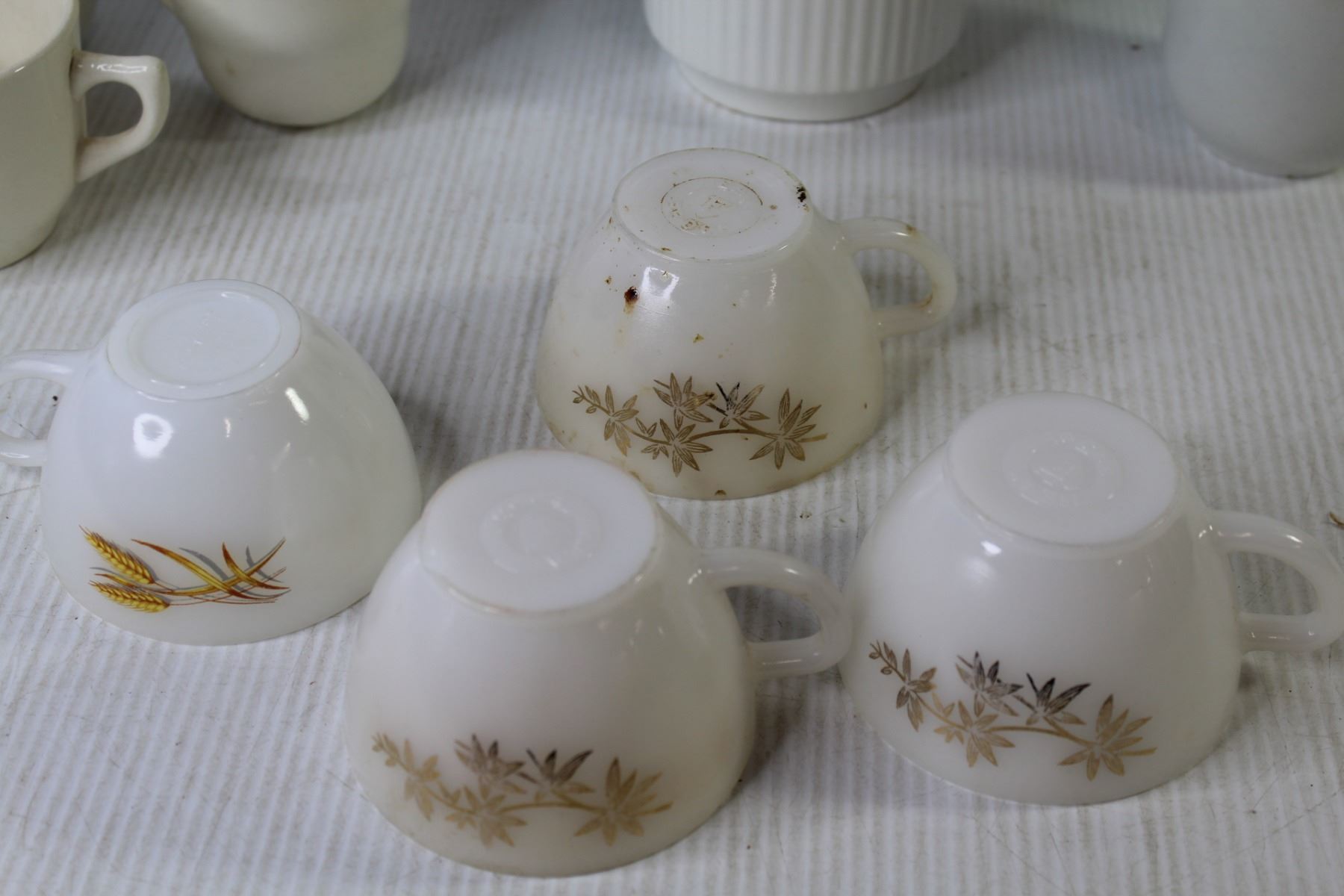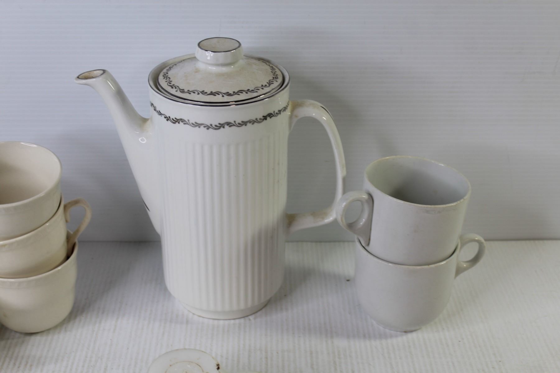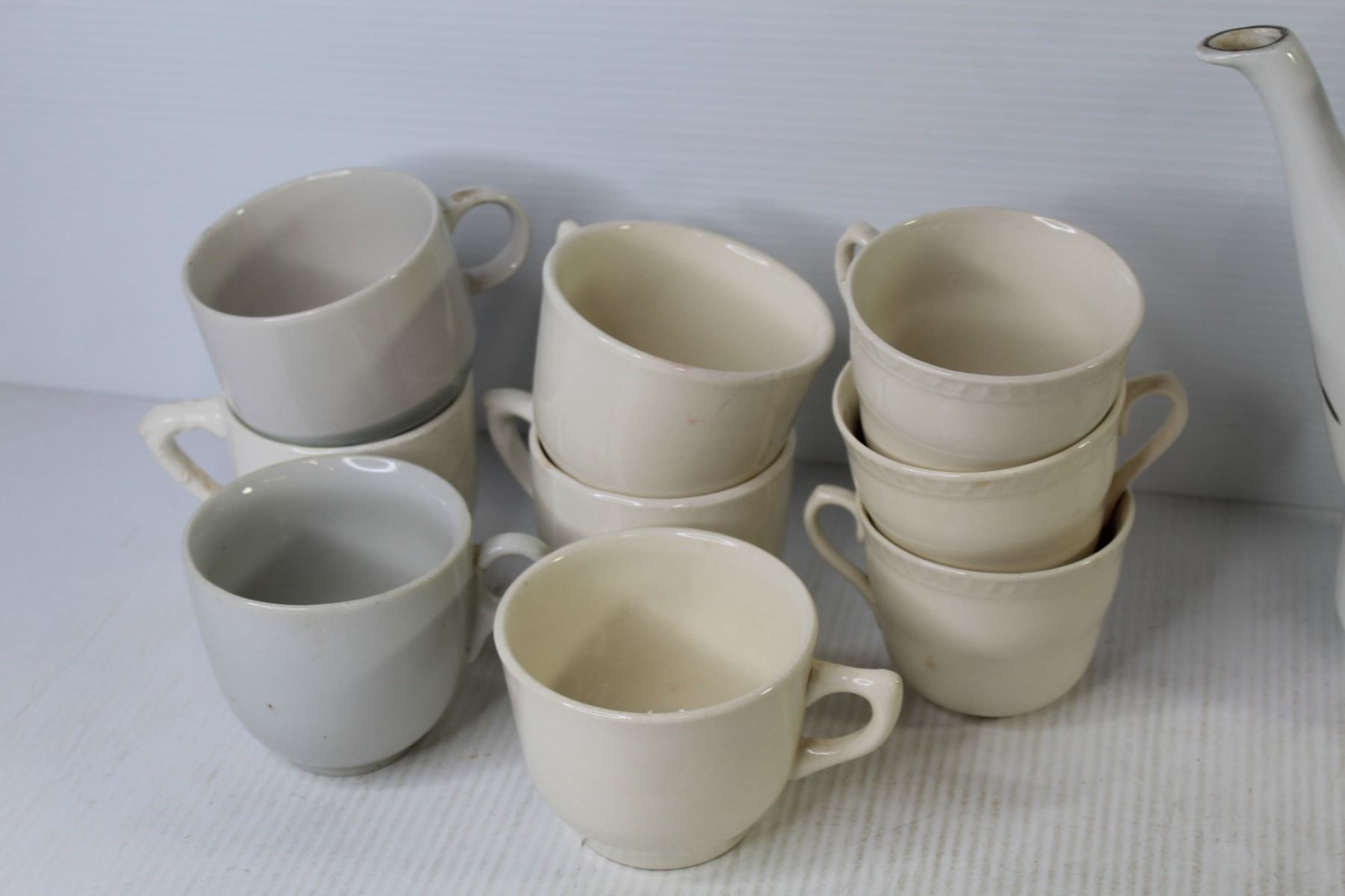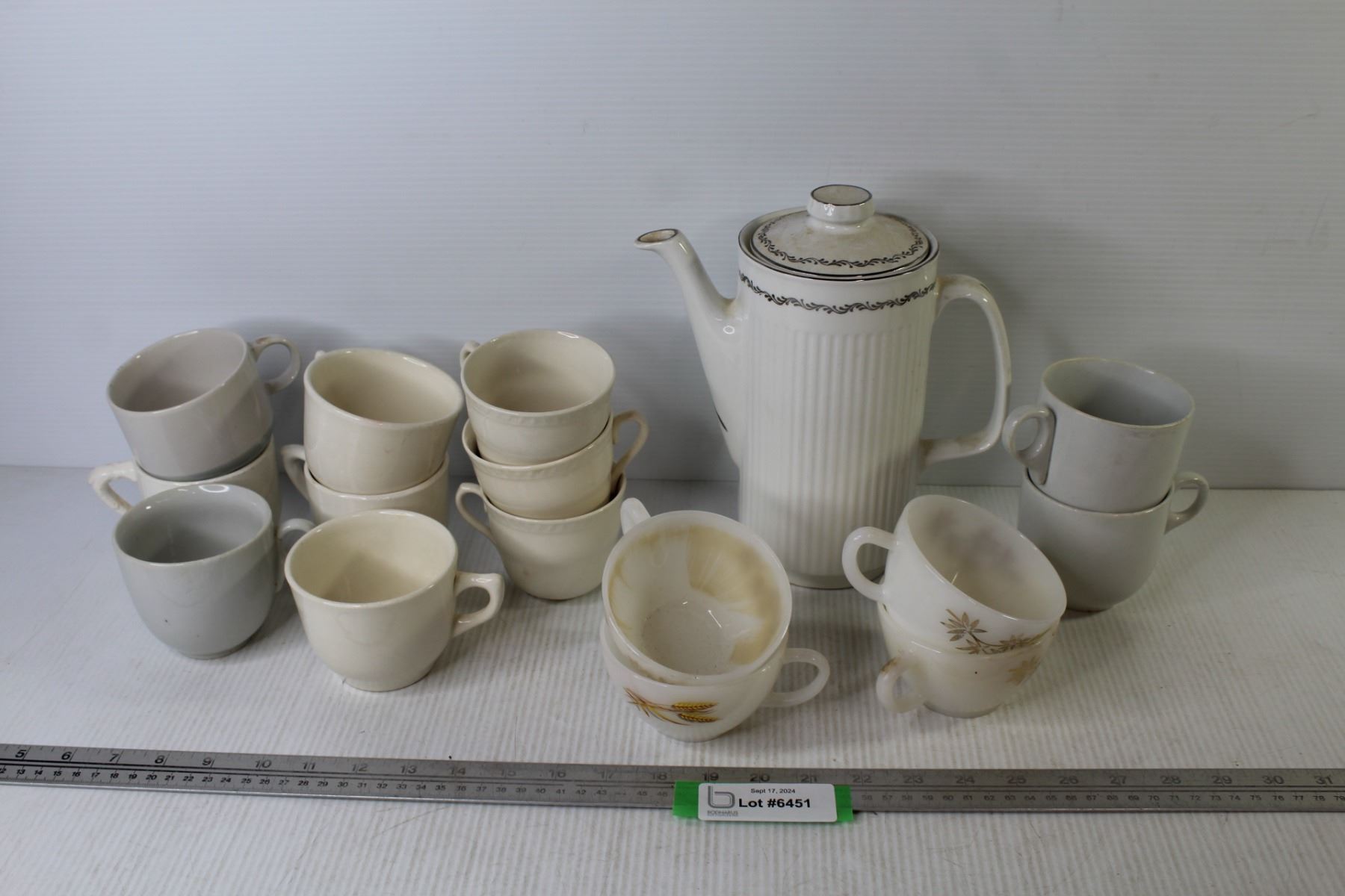 Ceramic Coffee Pot - Assorted Cups - (4) Fire King Cups