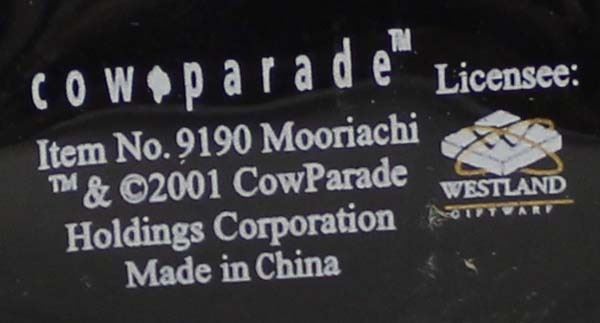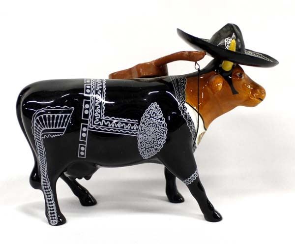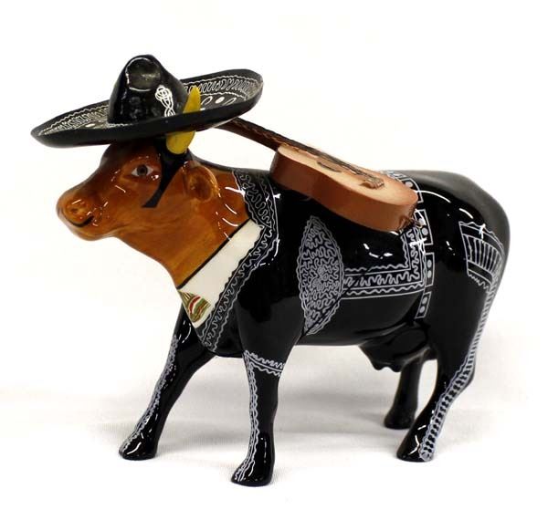Westland Cow Parade Mooriachi Figurine, #9190, measures 2'' x 5'' x 7'', marked on the bottom, sombrero needs to be glued back on