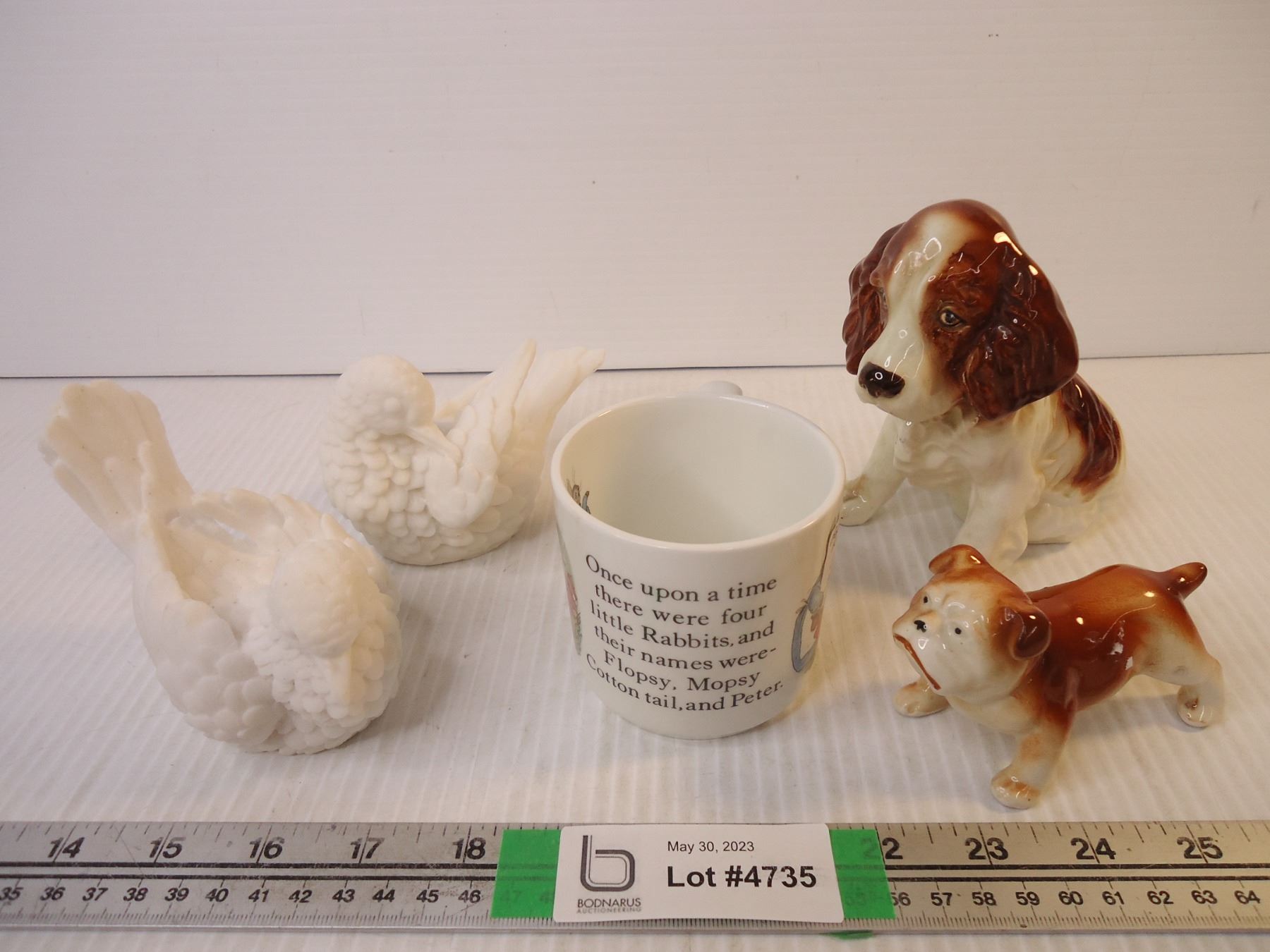 Ceramic Dogs, (2) Doves and Peter Rabbit Mug