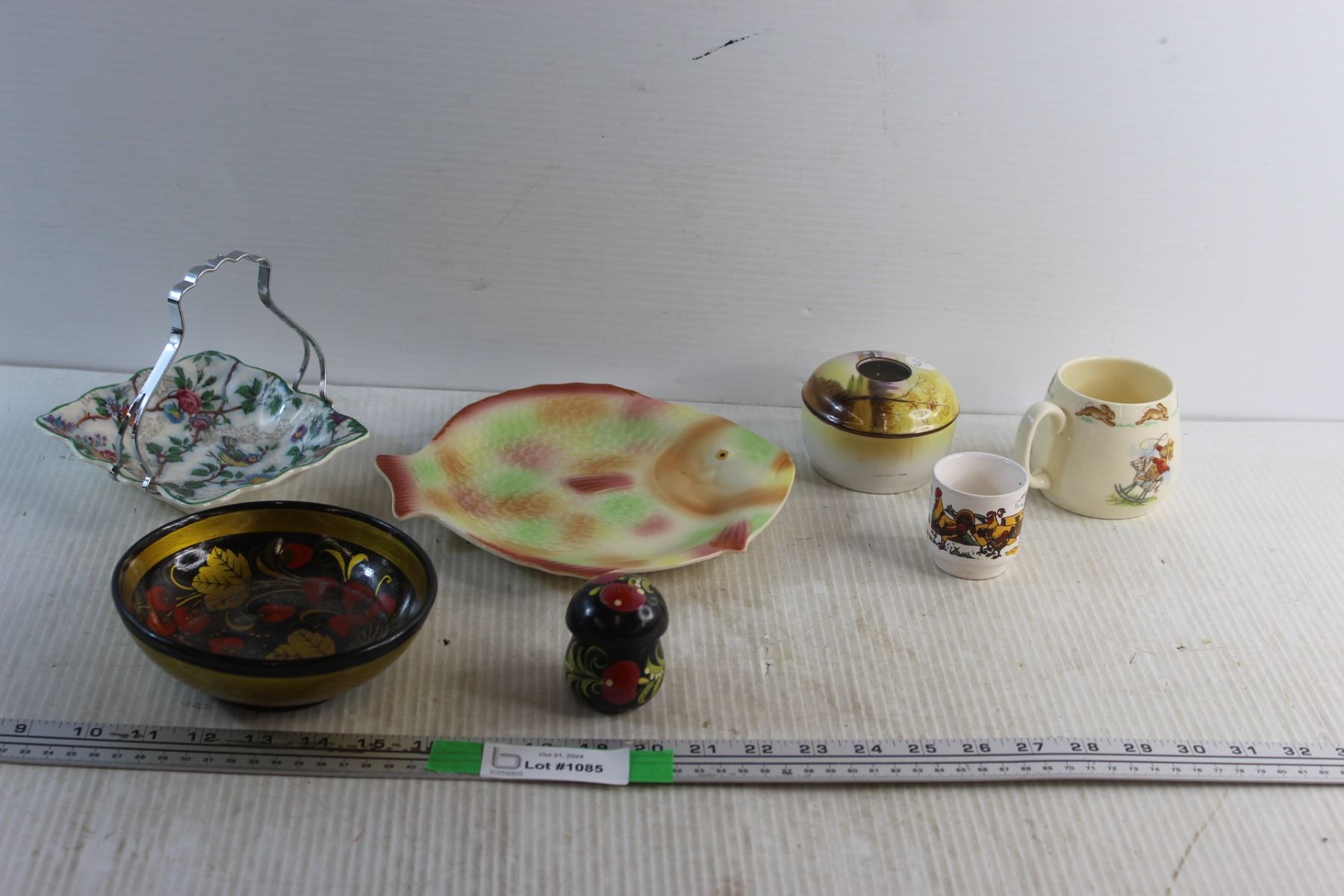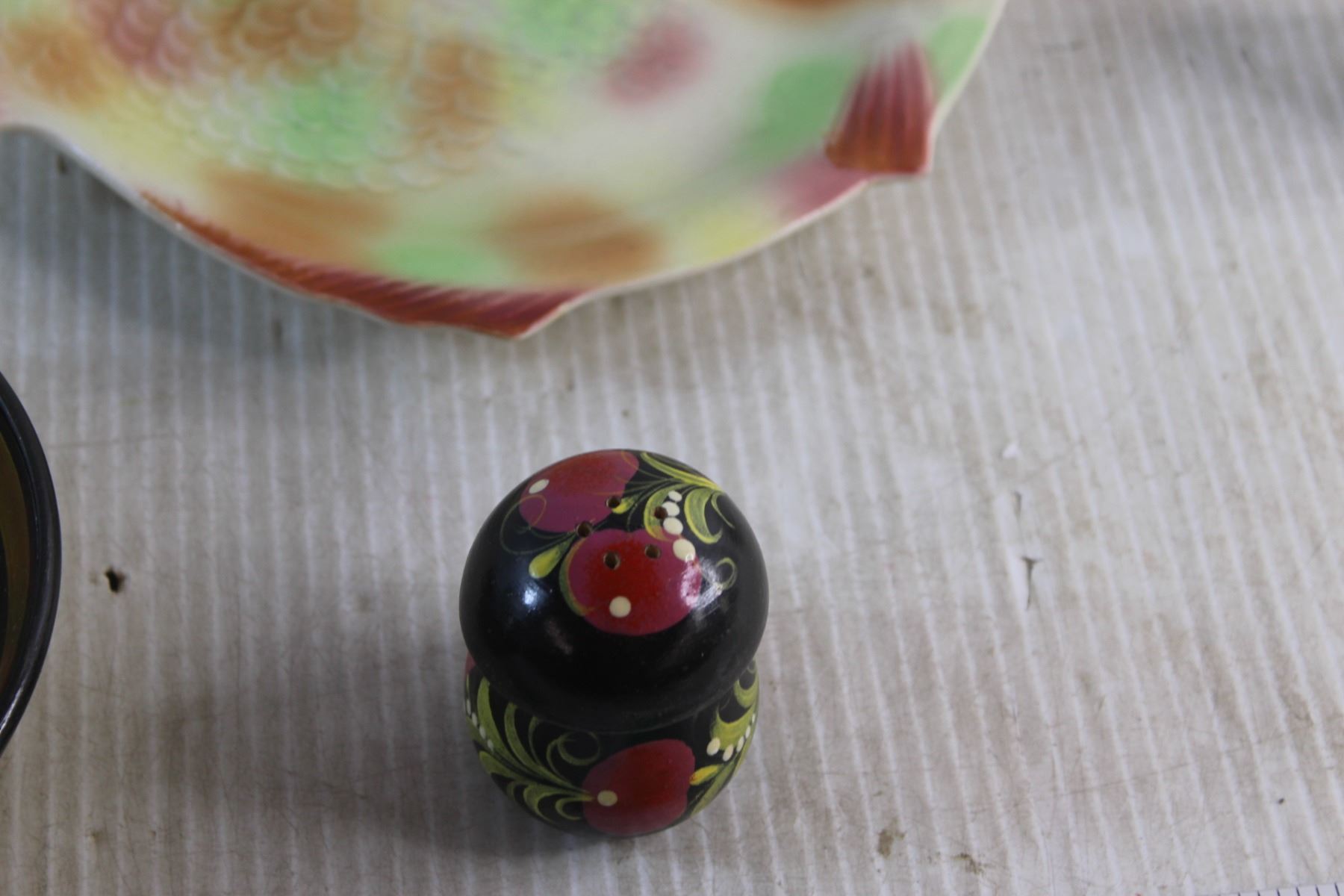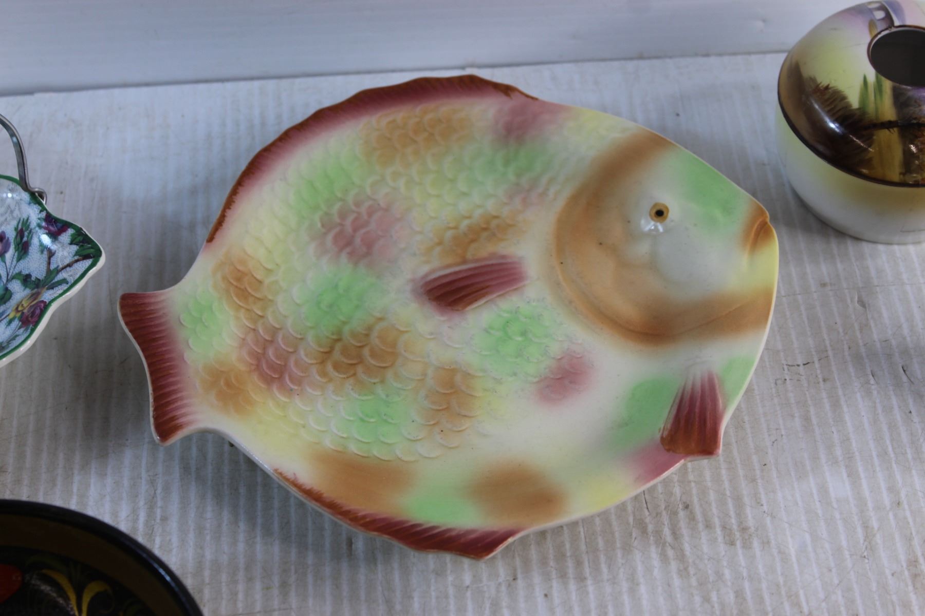 Ceramic Fish Serving Plate, Decorative Wooden Bowl, Candy Dish, Wooden Salt Shaker and Assorted Item