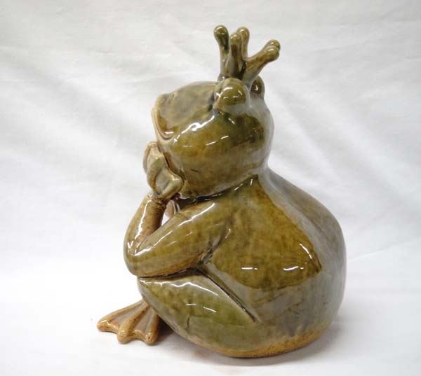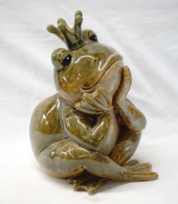 Ceramic Frog Prince Figurine, measures 8.5'' x 5'' x 6''