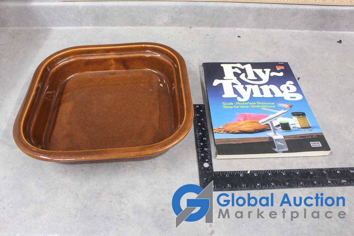 Ceramic Frying Pan and Fly Tying Books