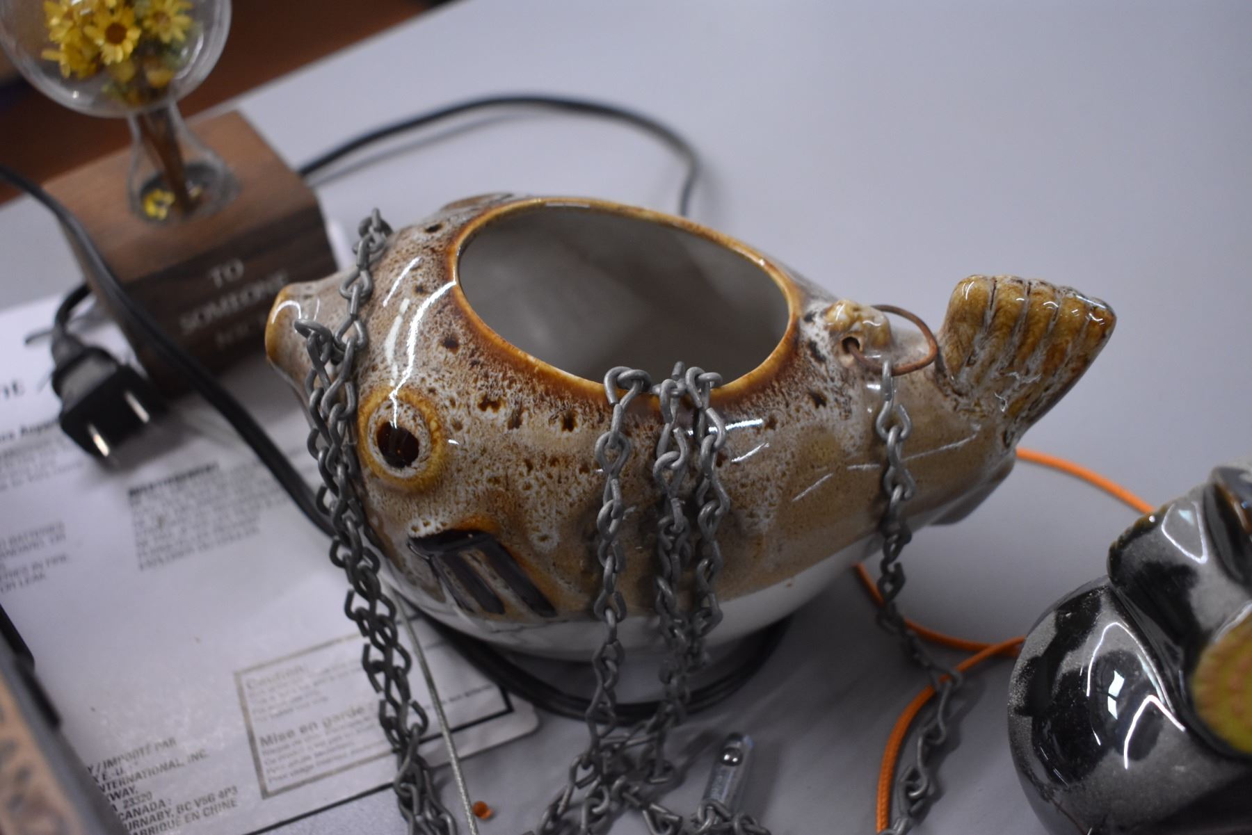 Ceramic Hanging Fish Planter with Misc Household Items