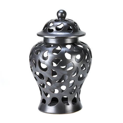 Ceramic Jar With Lid **|**|** The perfect finishing touch to your decor, this lovely ceramic decorative jar features paisley-shaped cutouts and a fluted lid. It will enhance your tabletop or mantel with designer style! Item weight: 3.8 lbs. 8 x 8" x 15" high Ceramic."