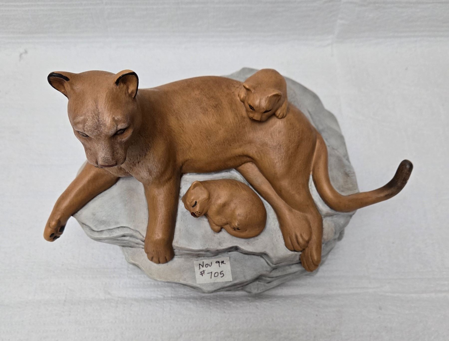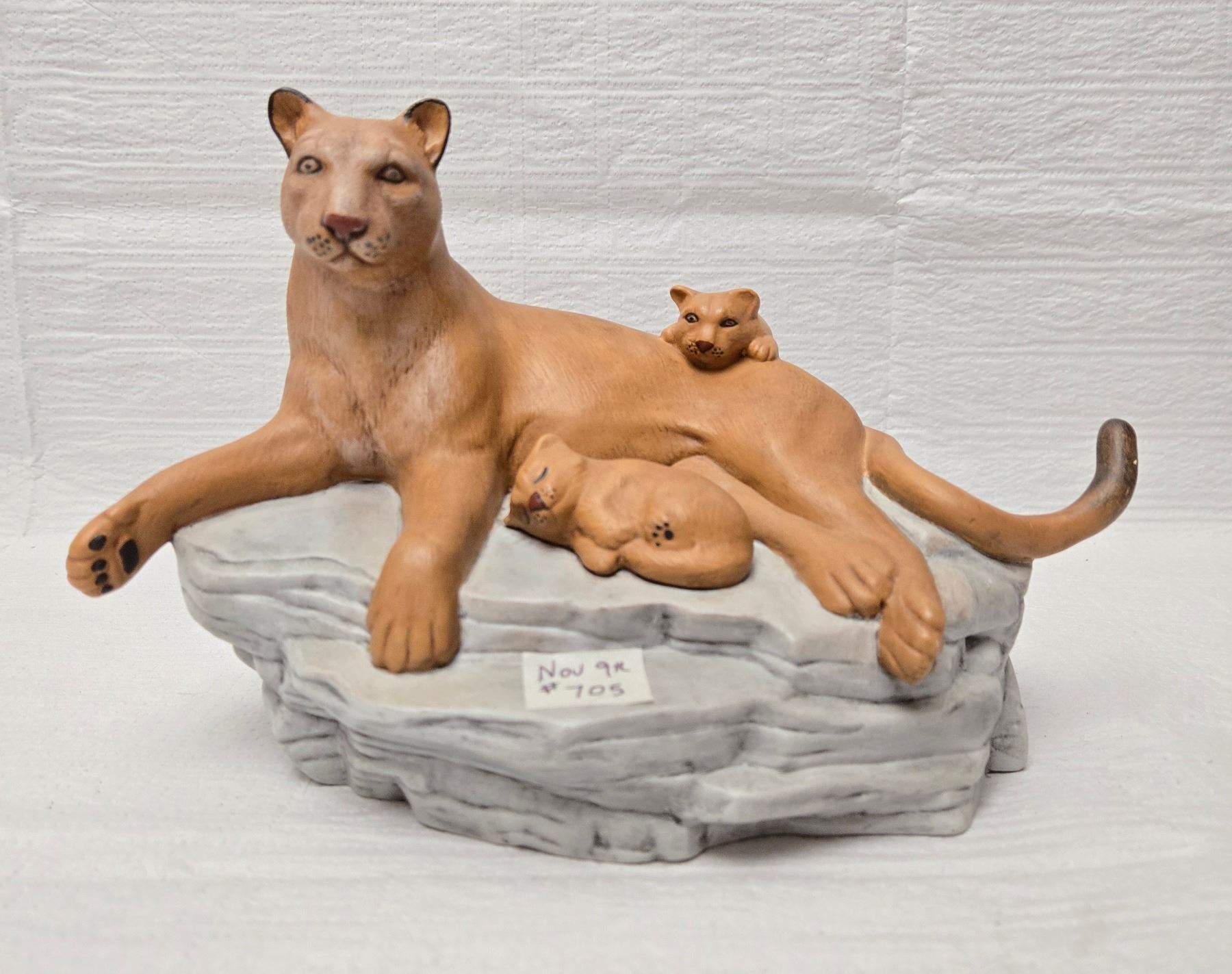 Ceramic Lioness with Cubs on Rock