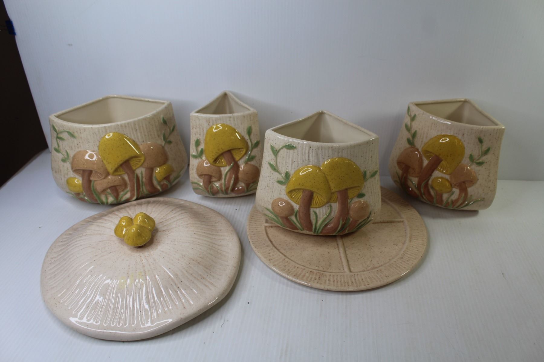 Ceramic Mushroom Themed Cannister Set - Marked - JL 1987