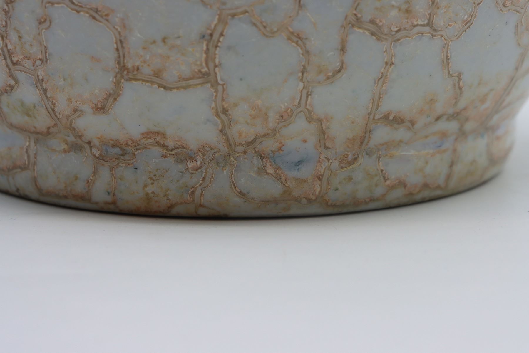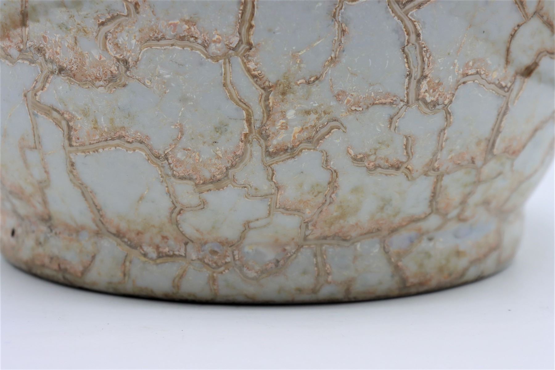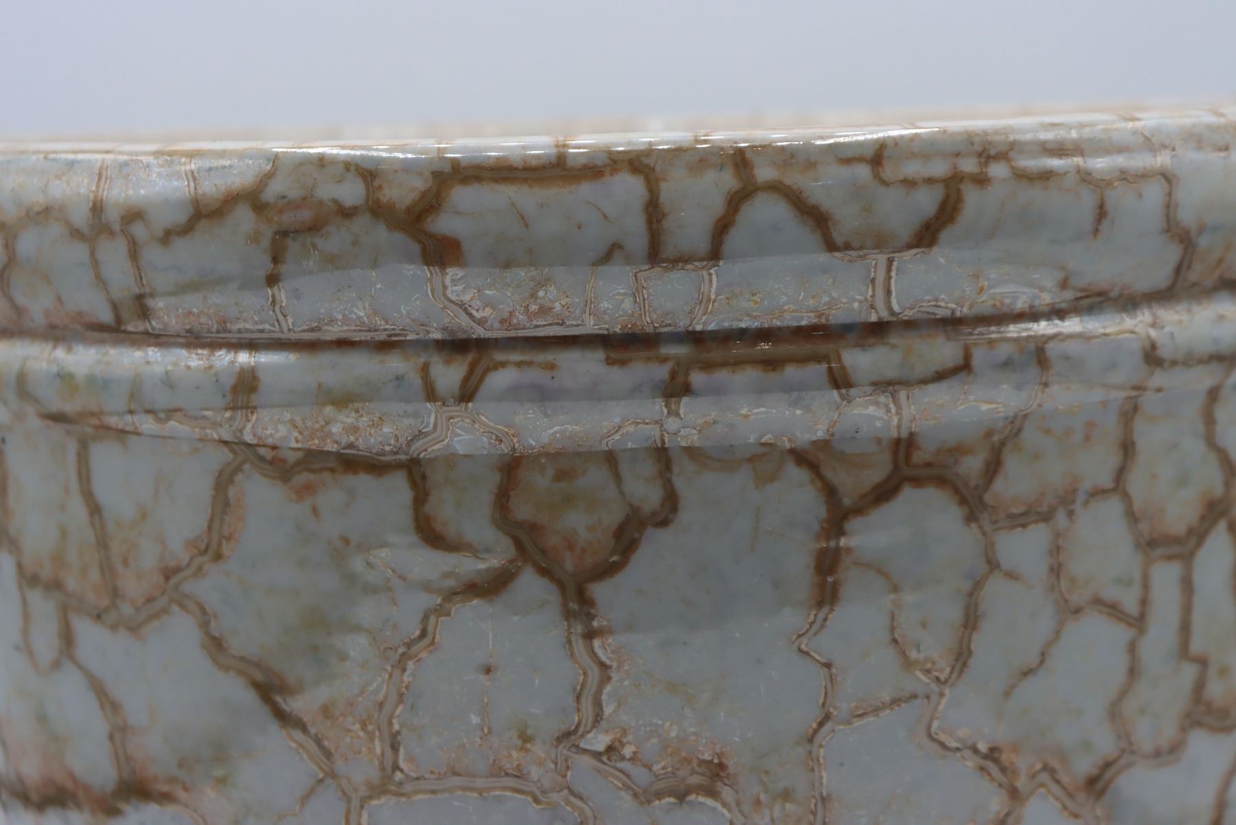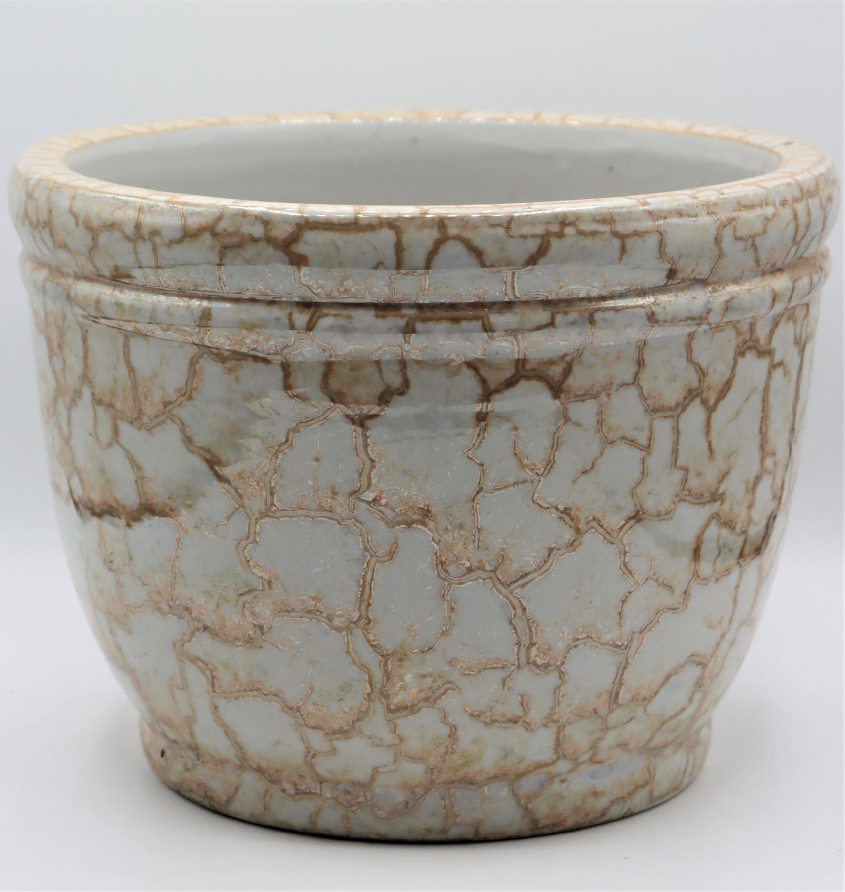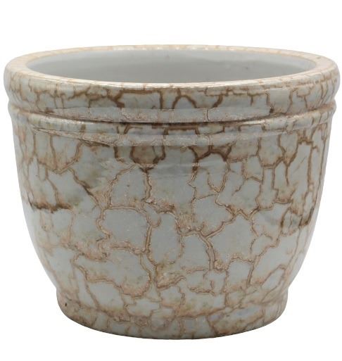 Decorative white ceramic planter with brown-gold patterned accents overall, from Napco Imports, a heavy and substantial piece.