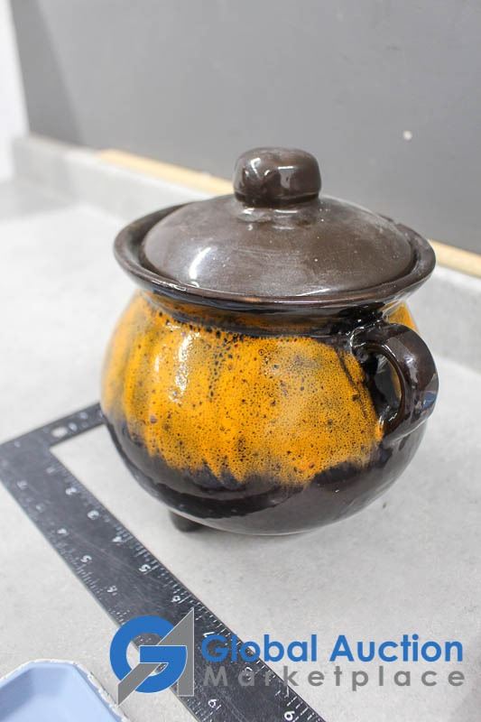 Ceramic Pot w/Lid and Porcelain Decorative Plate