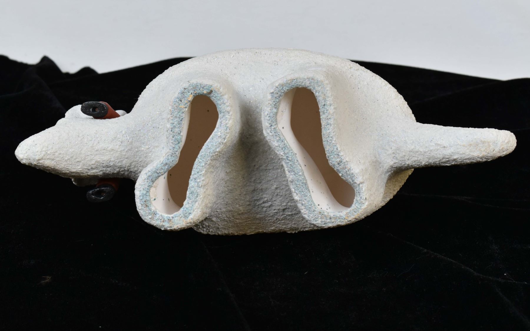 Hand Crafted Ceramic Pottery Armadillo Storyteller, hand painted, measures 4'' x 10'' x 7''