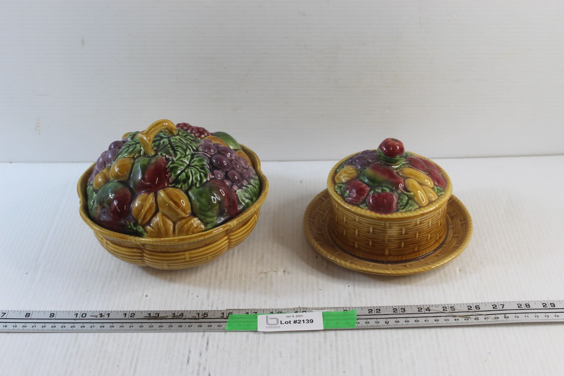 Ceramic Pottery Butter Dish and Bowl with Lids