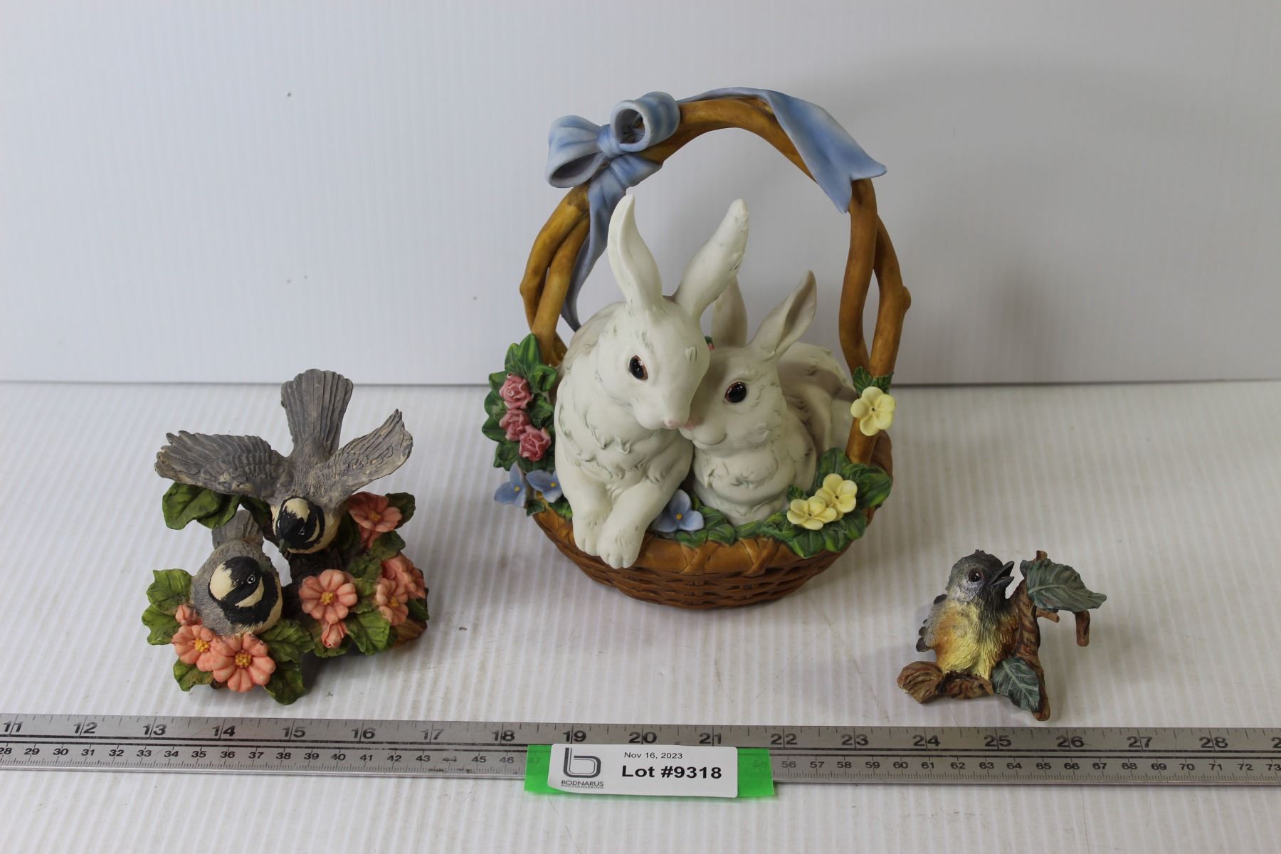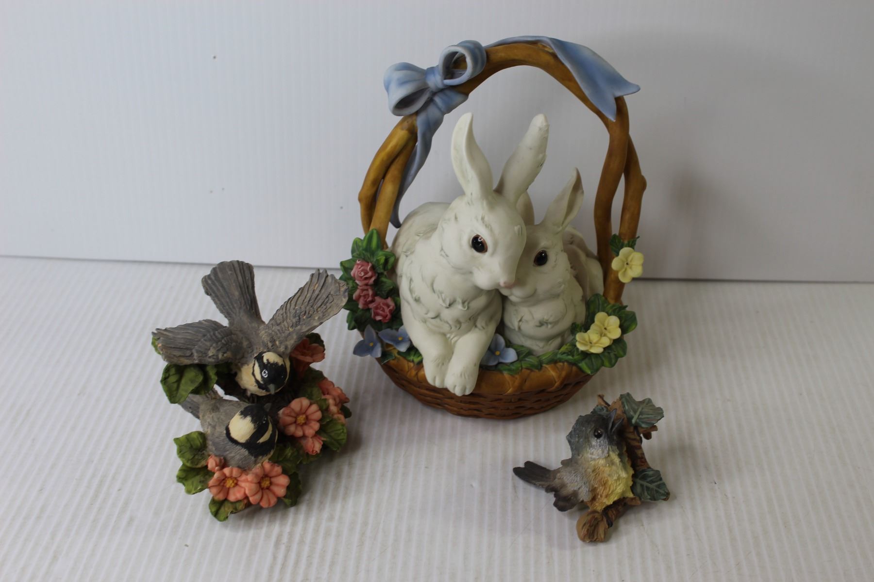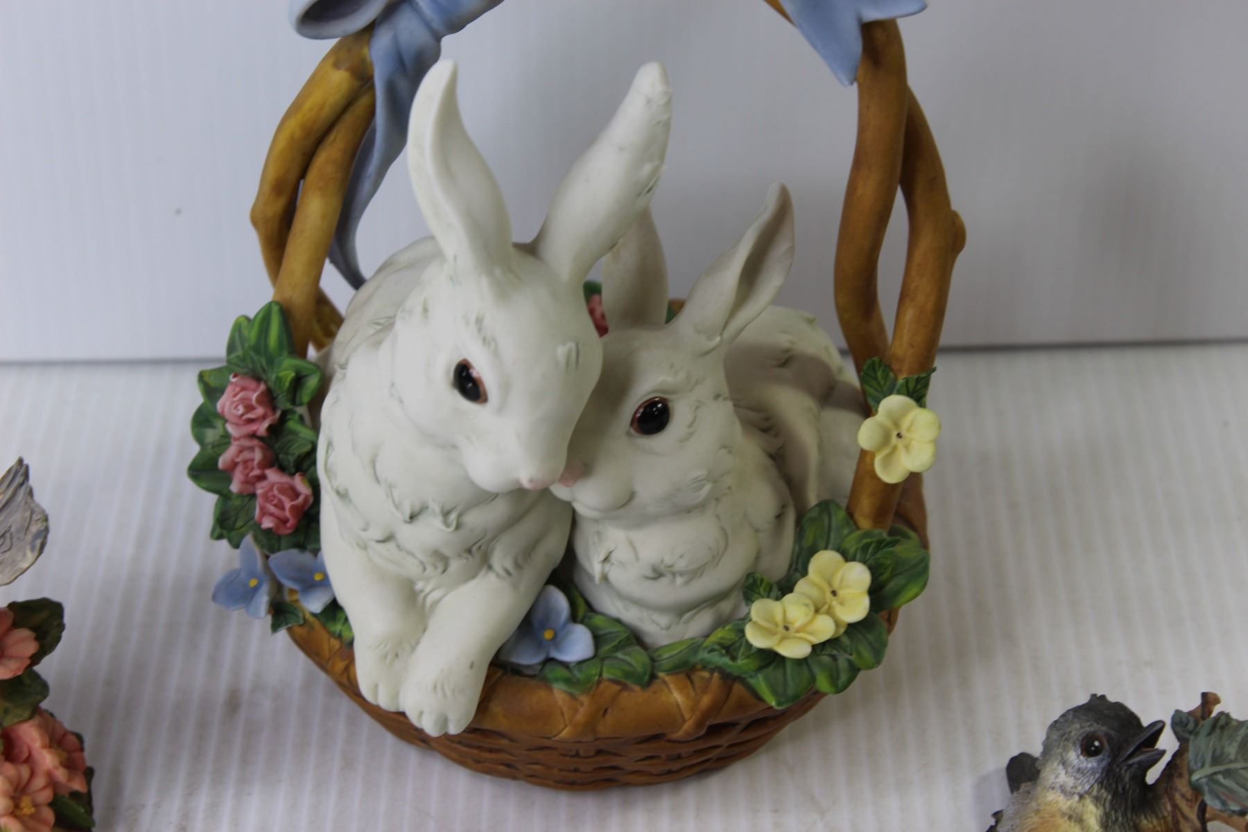 Ceramic Rabbits in Basket - (2) Ceramic Birds