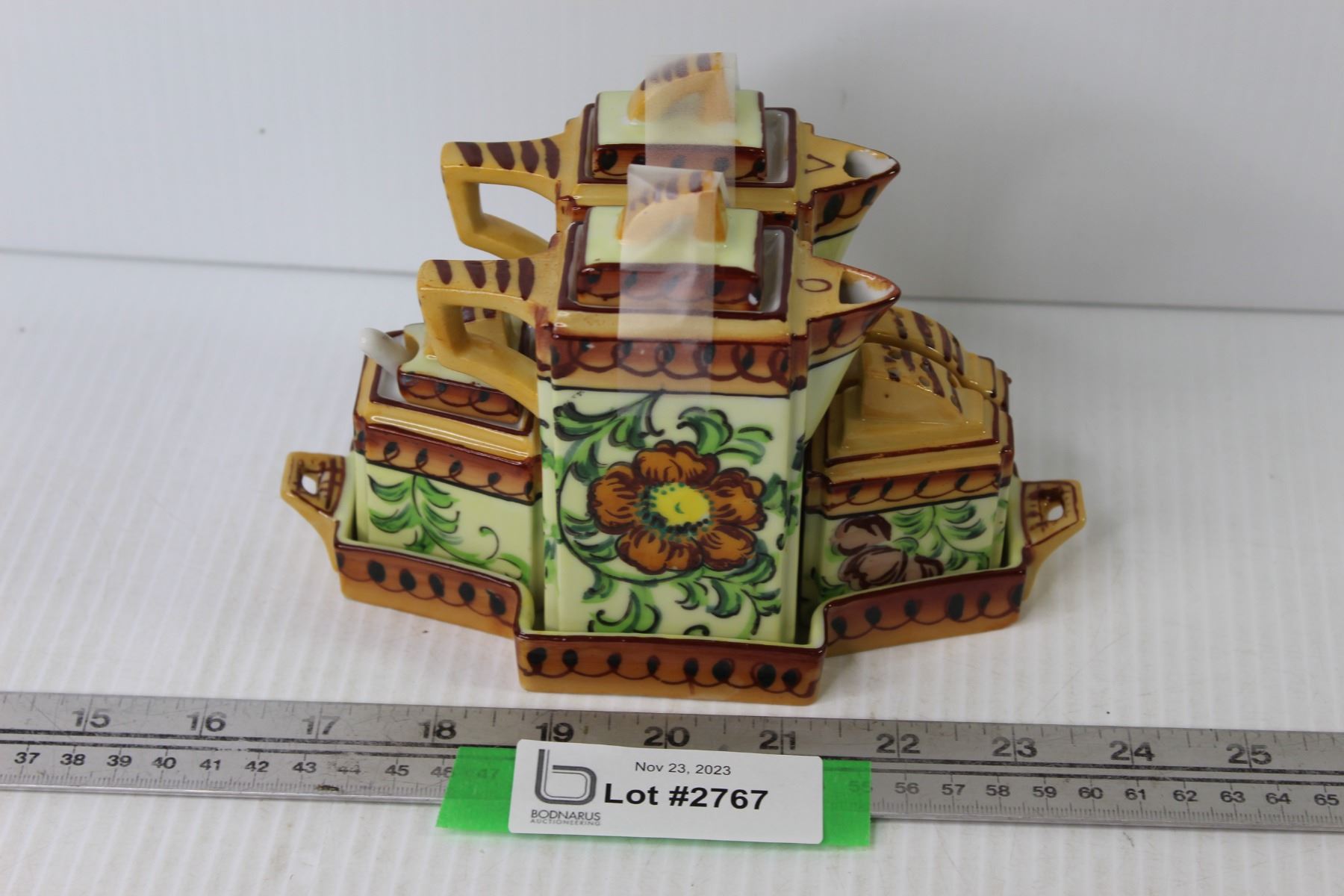 Ceramic Salt & Pepper - Sugar - Oil & Vinegar Set on Tray (Made in Japan)