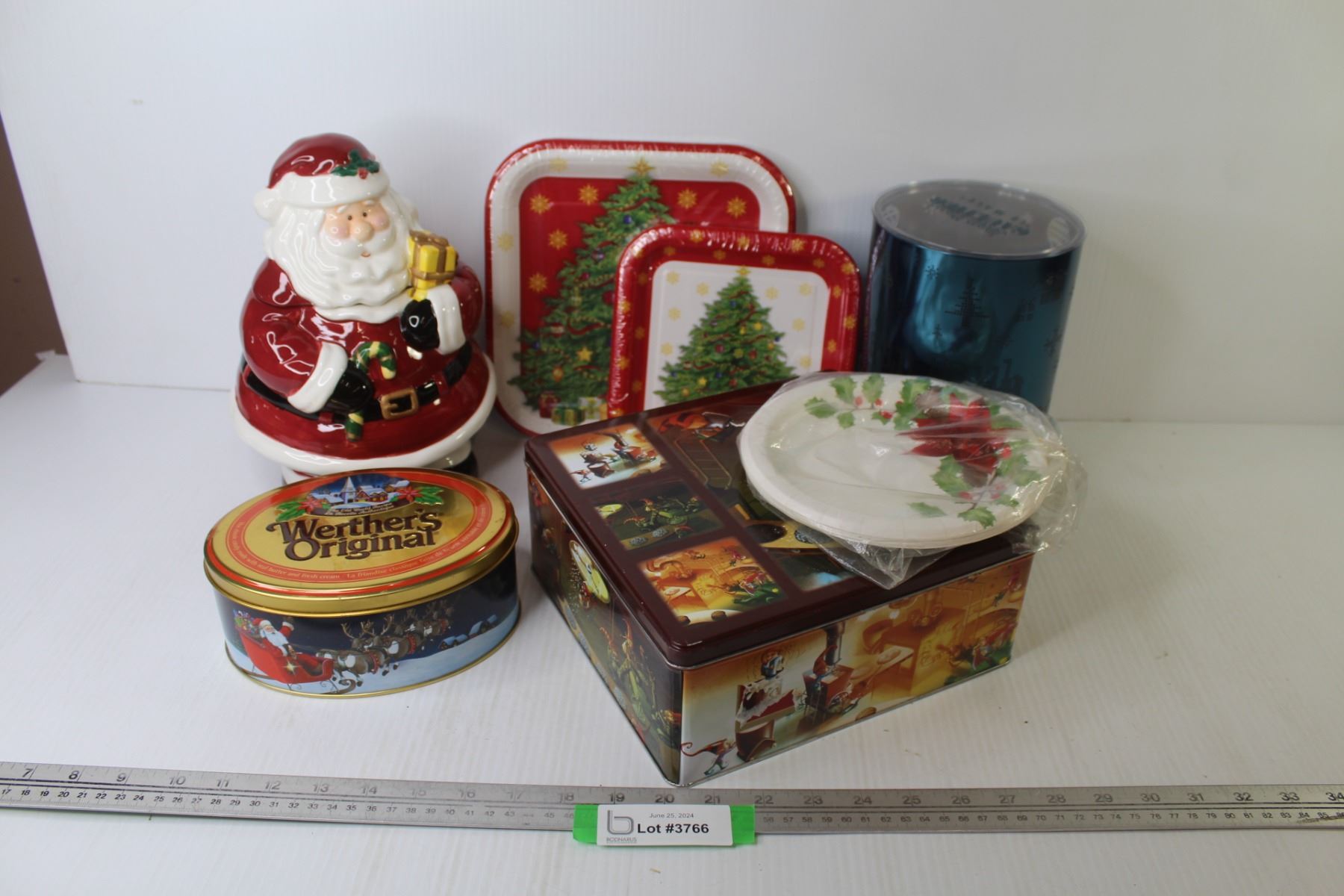 Ceramic Santa Cookie Jar - Tin Containers - Paper Plates - Tin Container