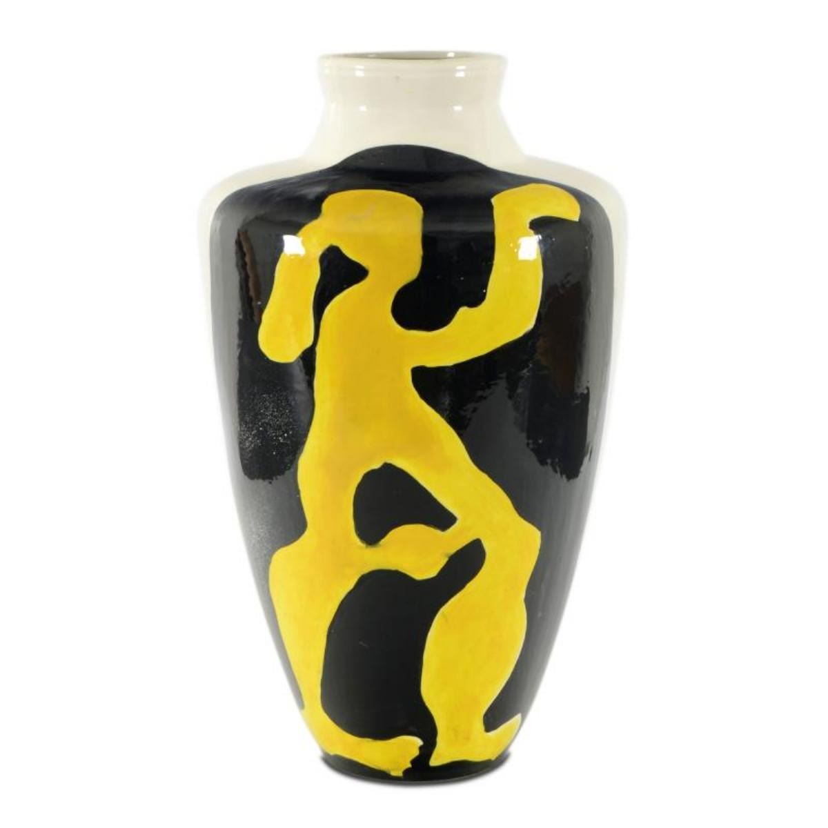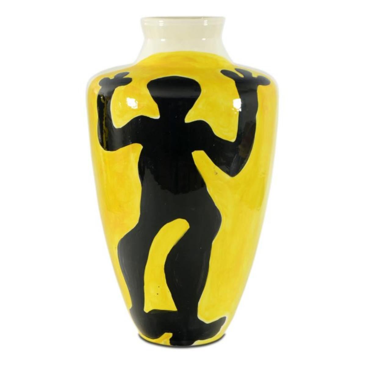 This is a set of hand painted ceramic decorative vase sculptures by Jenik Cook, hand signed by the artist. Includes Letter of Authenticity. This artwork comes from the artist's personal collection. Each measures approx. 9" (diameter) x 17" (height).