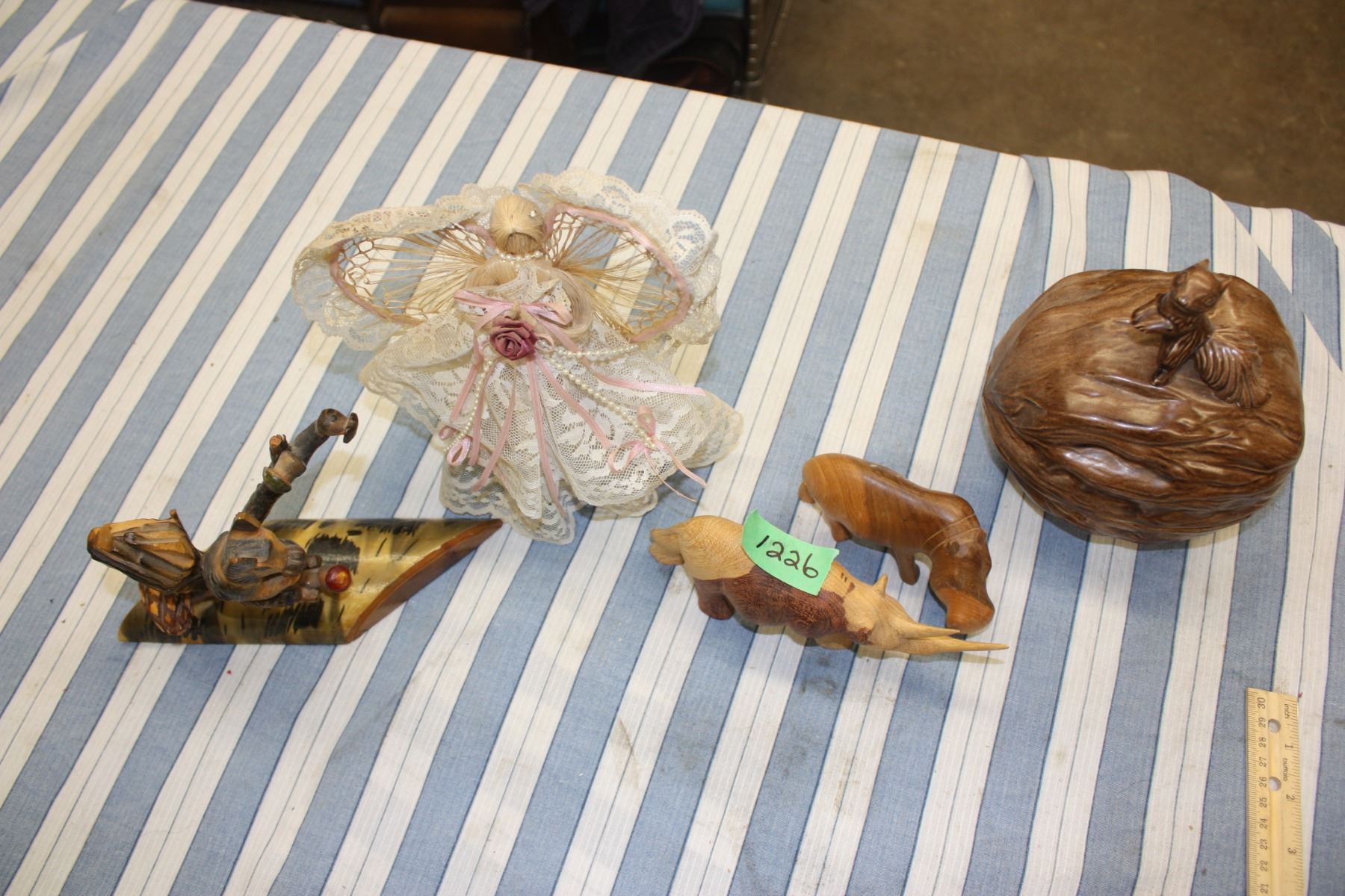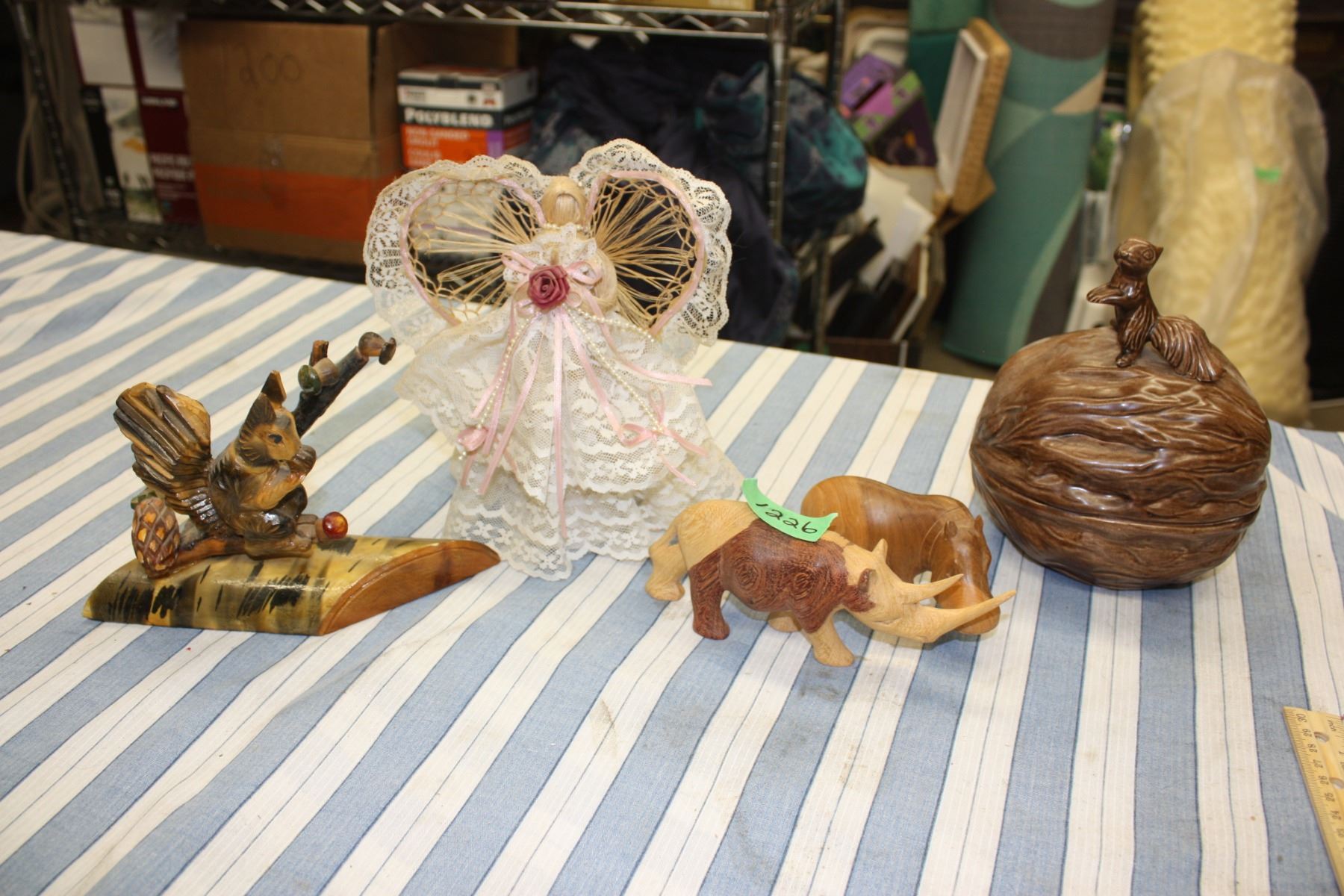 Ceramic Squirrel Container, 3 Wooden Display Pieces and Angel
