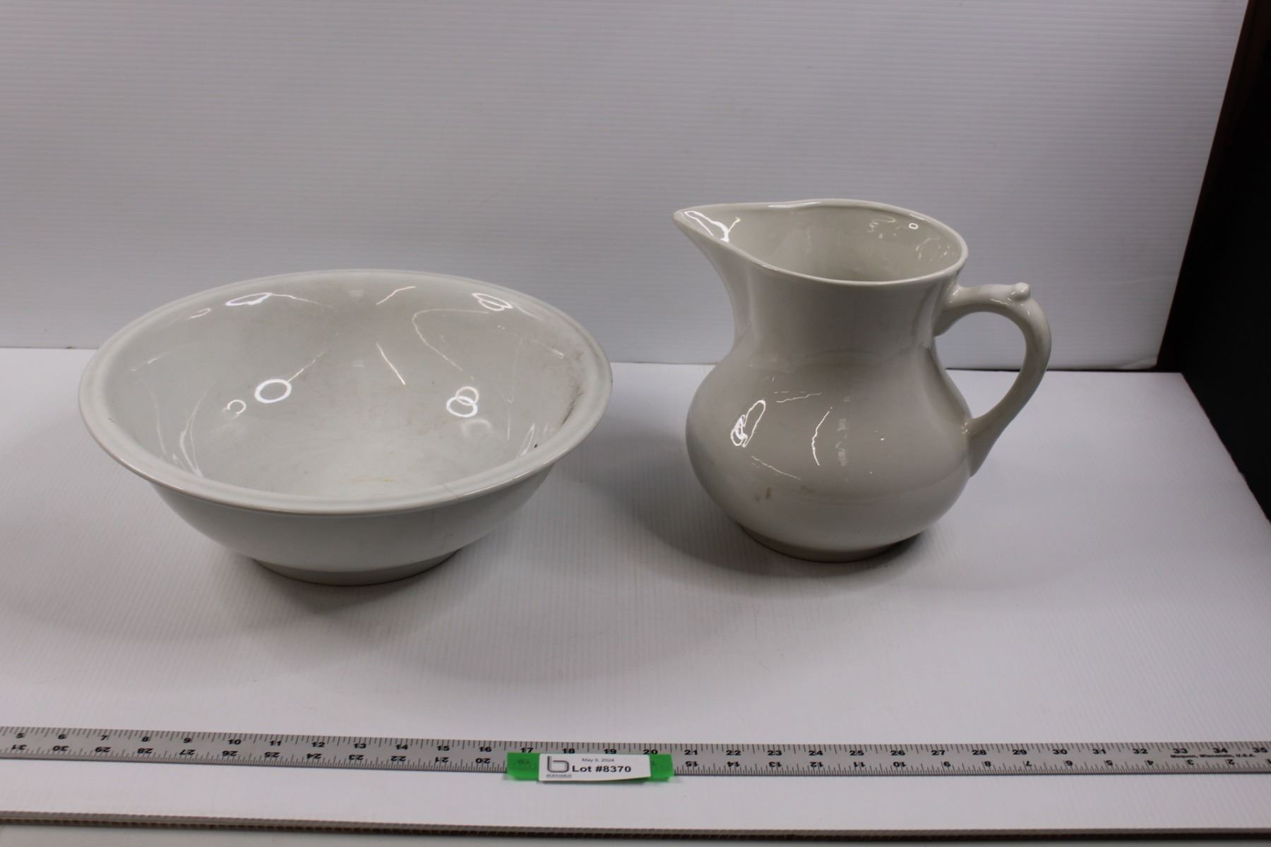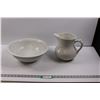 Ceramic/Stoneware Alfred Meaklin Wash Basin (Cracked) & Unmarked Water Pitcher