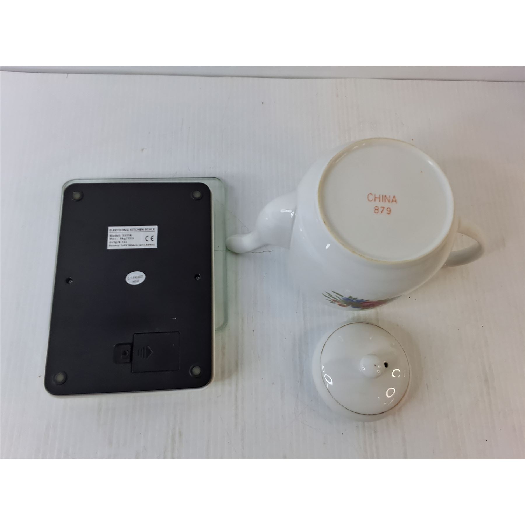 Ceramic Teapot & Starfrit Kitchen Scale- As Is, May Require Batteries