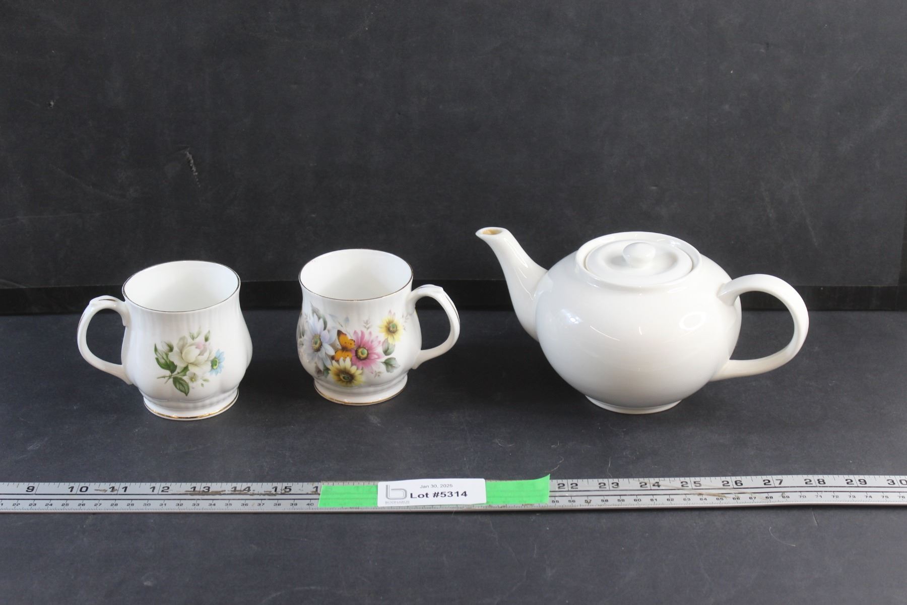 Ceramic Teapot and Royal Windsor Tea Cups Set