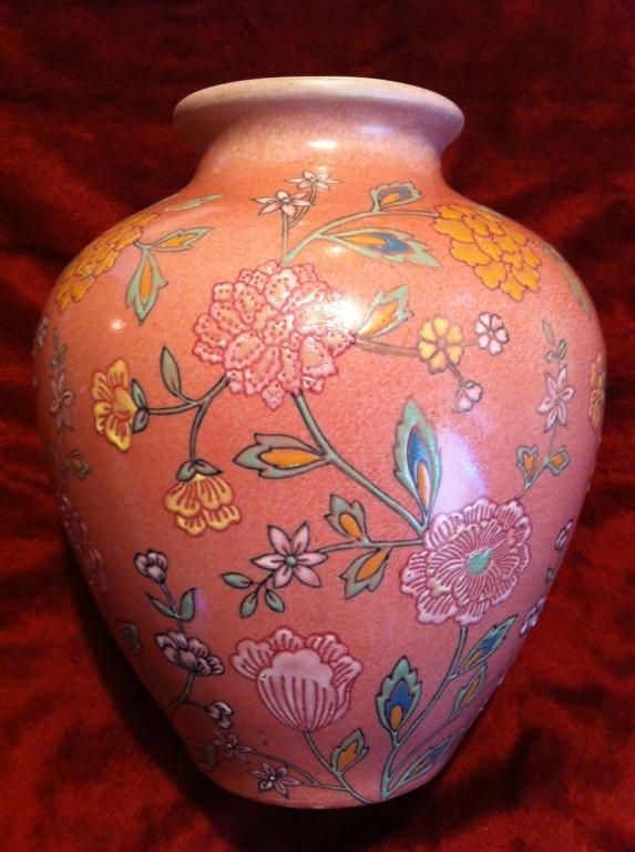 Ceramic Vase #621 Pink flowers on vines