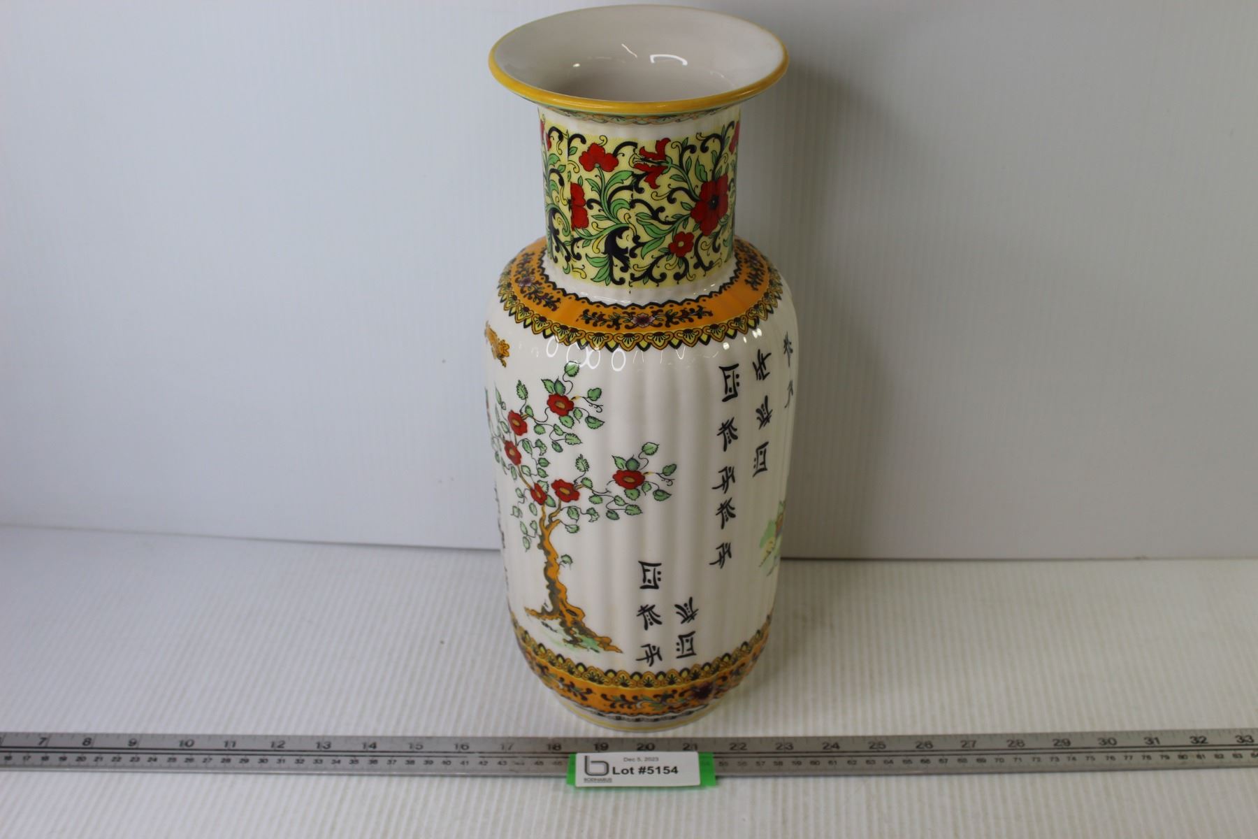 Ceramic Vase Asian Themed (14 3/4"t x 6 1/4"w)