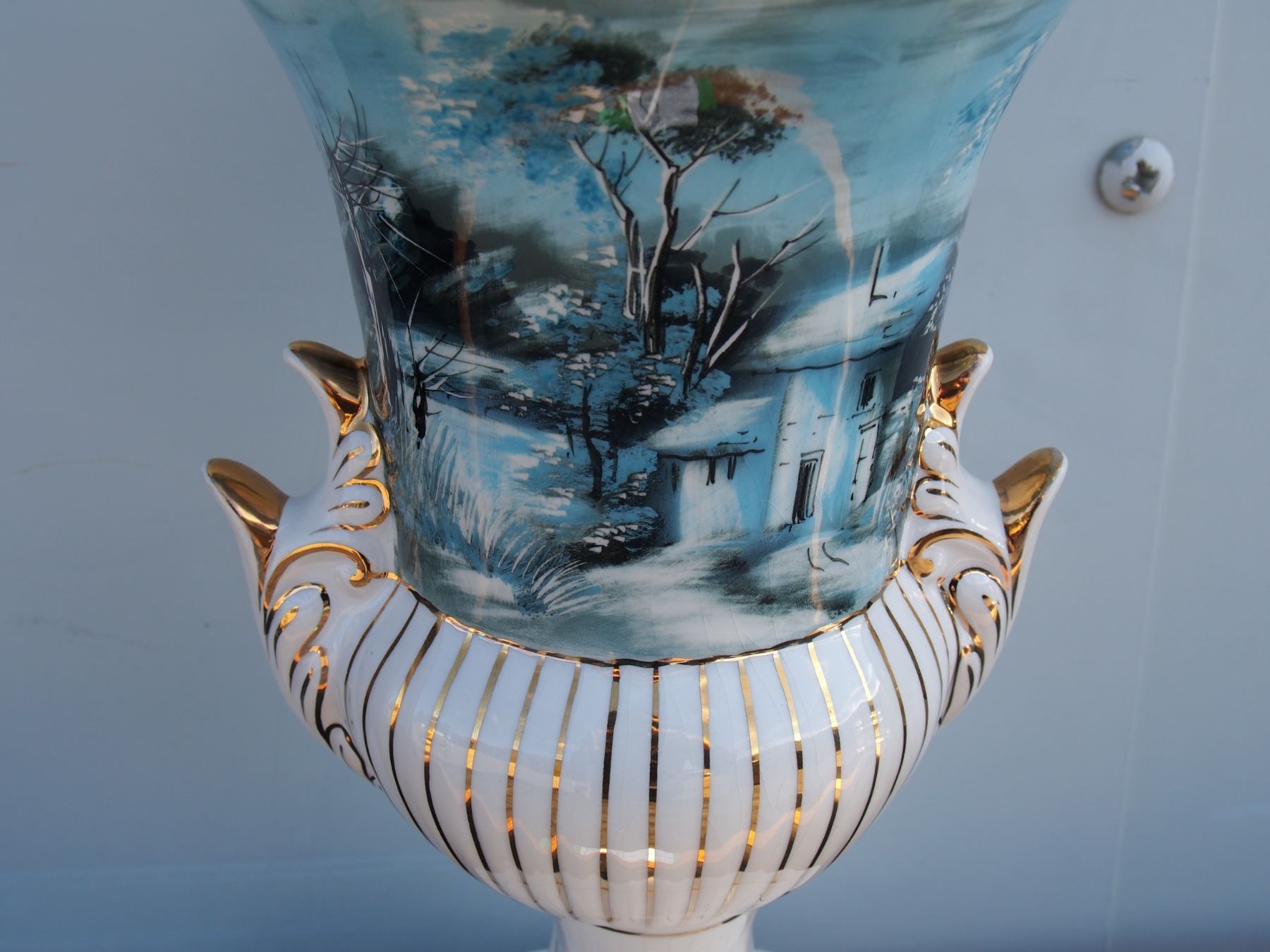 Ceramic Vase (Lines in Coating and Chip on Base) 14" T