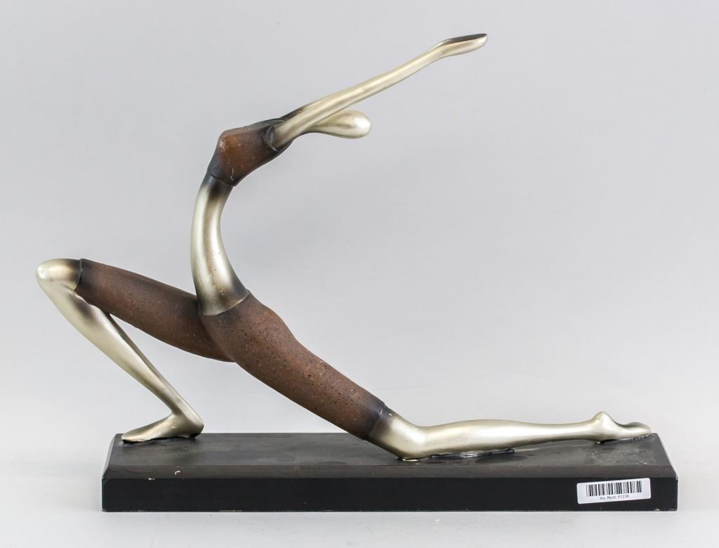 Ceramic sculpture. Featuring a woman stretched out in a yoga pose,with elongated limbs and figure. 29 x 39 cm. 1 kg..