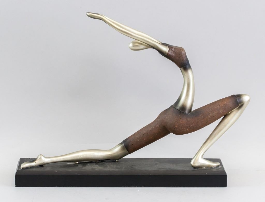 Ceramic sculpture. Featuring a woman stretched out in a yoga pose,with elongated limbs and figure. 29 x 39 cm. 1 kg..