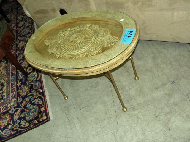 Ceramic and glass top side table with metal base