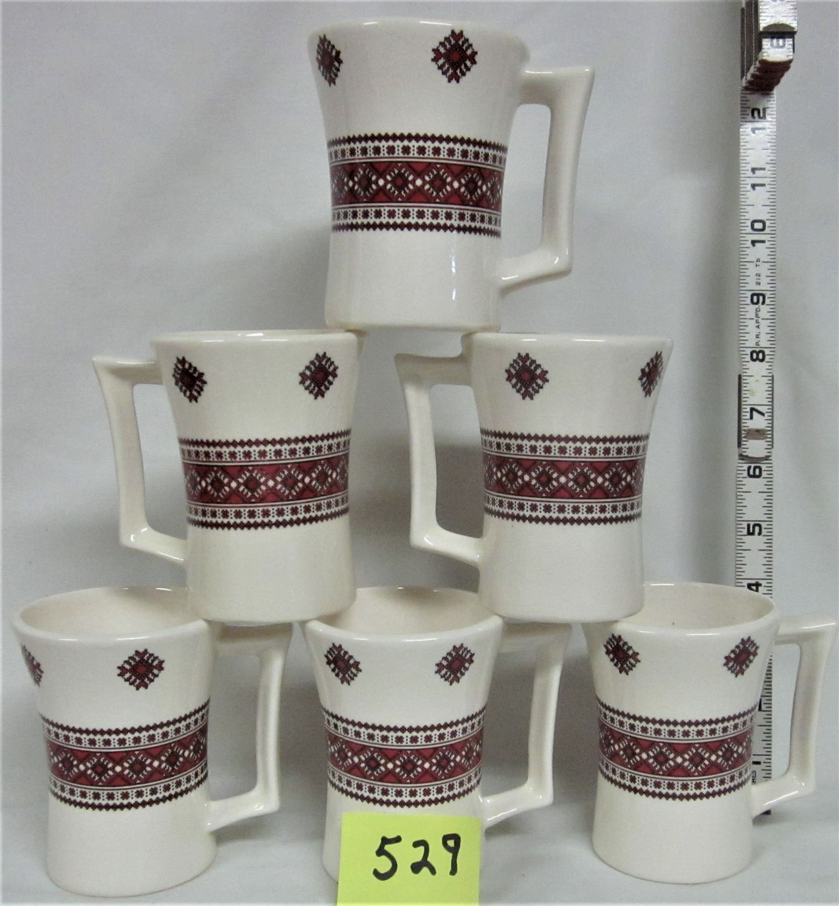 Ceramic pottery set of 6 coffee cups traditional Ukrainian pattern