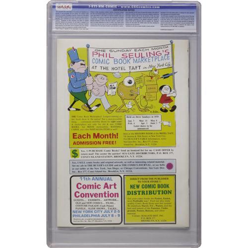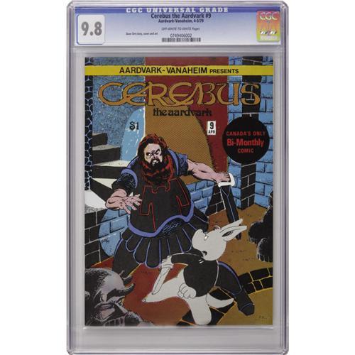 <B>Cerebus The Aardvark #9 (Aardvark-Vanaheim, 1979) CGC NM/MT 9.8 Off-white to white pages.</B></I> Even though this issue is "only" 27 years old, this is the <I>one</B></I> copy to earn NM/MT 9.8 accolades from CGC to date. Overstreet 2006 NM- 9.2 value = $65. CGC census 9/06: 1 in 9.8, none higher.<BR><BR><b>Shipping:</b> Slabbed Comic (<a target="_blank" href="http://www.heritageauctions.com/common/shipping.php">view shipping information</a>)