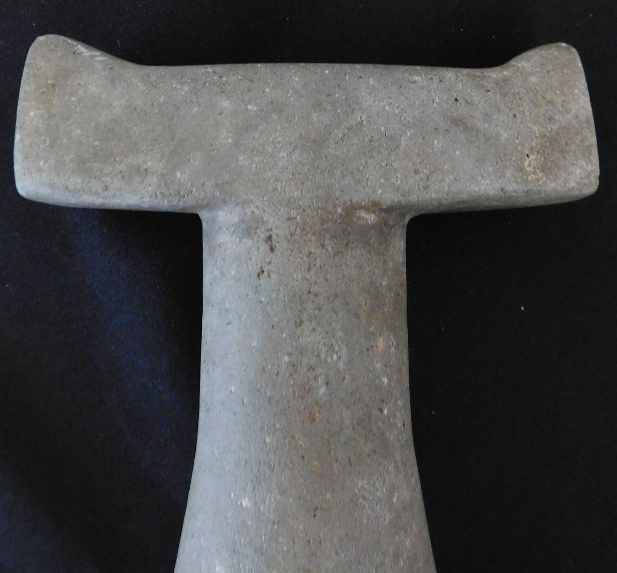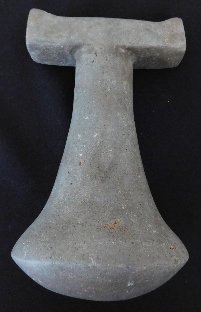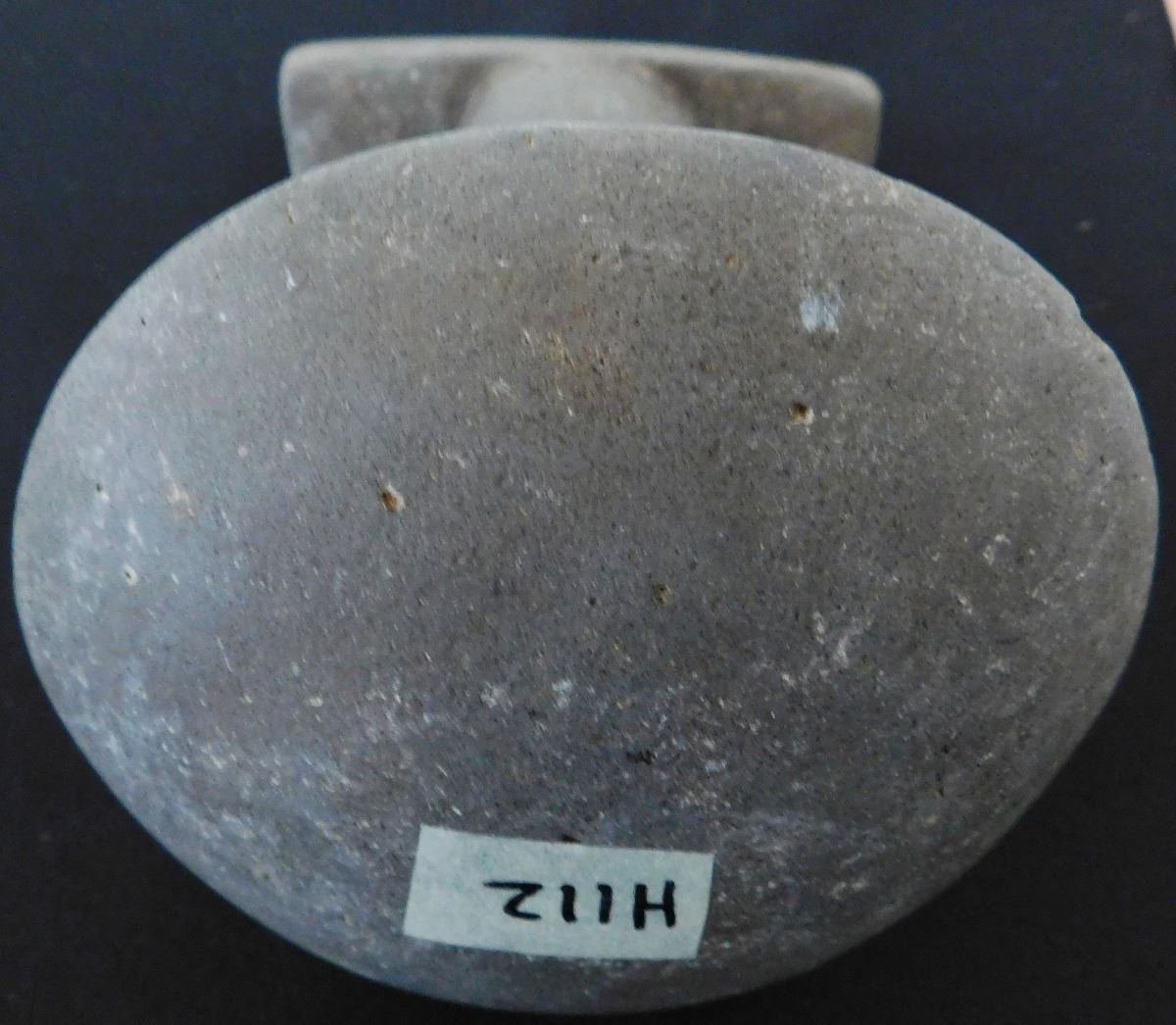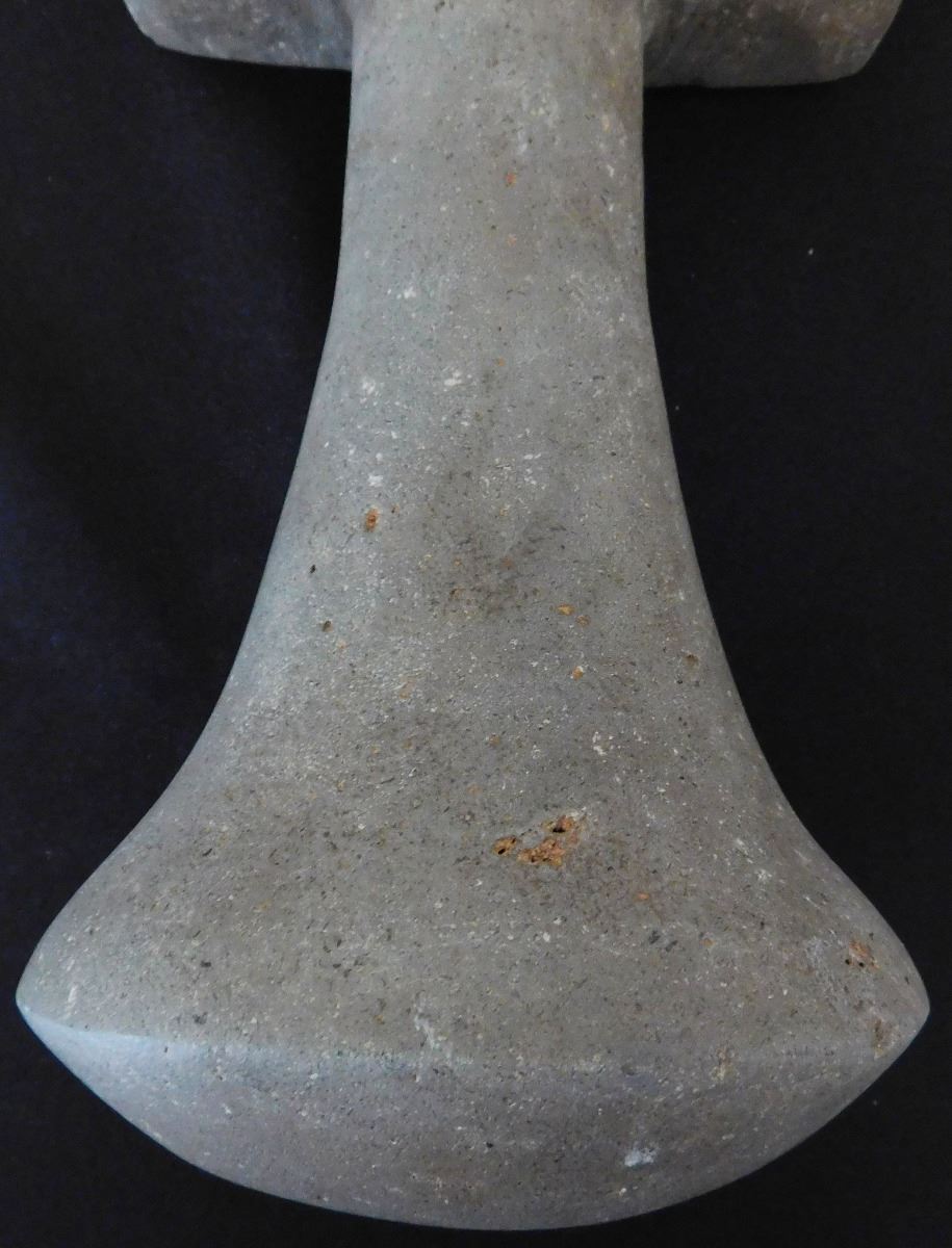 Ceremonial Poi Pounder, pre-historic item, made from basalt and measuring 9 x 5 x 5 inches. From Society Island. It has unusual features on bar top, very rare! Condition: Good, see images. Shipping: $45.00 w/insurance.