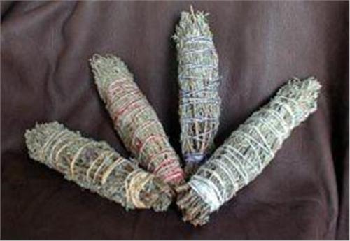 The sacred ritual of purifying with smoke comes from native tradition which says where sage & cedar are used, evil influence may not enter. The term “smudge” means to purify with smoke from certain sacred herbs. To purify your body, home, office, or healing room, ignite the bundle over an Abalone shell or ceramic bowl containing sand. Never blow on the herb or sweet grass being burned, as this will blow the purifying spirit out of the bundle. To keep the bundle burning, fan with a smudging feather or move the bundle while walking to give it air. Each bundle is approx. 6-8" long.