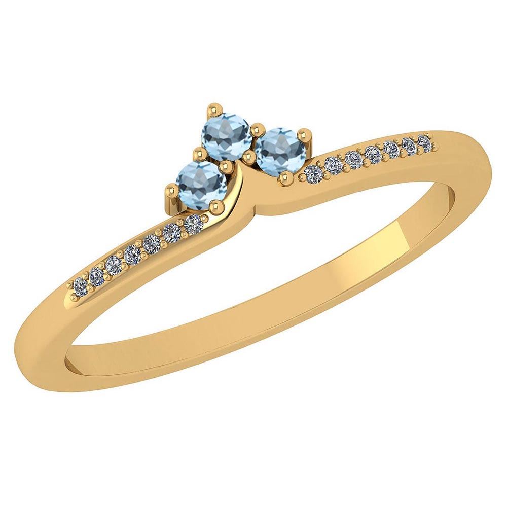 Certified 0.13 Ctw Aquamarine And Diamond 14k Yellow Go **|**|** Center Stone Weight ; 0.09 Ctw (3 Pcs Round) Center Stone: Aquamarine Center Stone Setting ; Prong (08.mm 14 Pcs Round Cut Diamond) 0.04 ctw Side Stone Color : White G-H Diamond Side Stone Setting: Prong Side Stone Clarity : VS/SI1 Metal Color Yellow Gold Metal Weight : Approx 2.10Gram 14K Yellow Gold Halo Ring VS/SI1