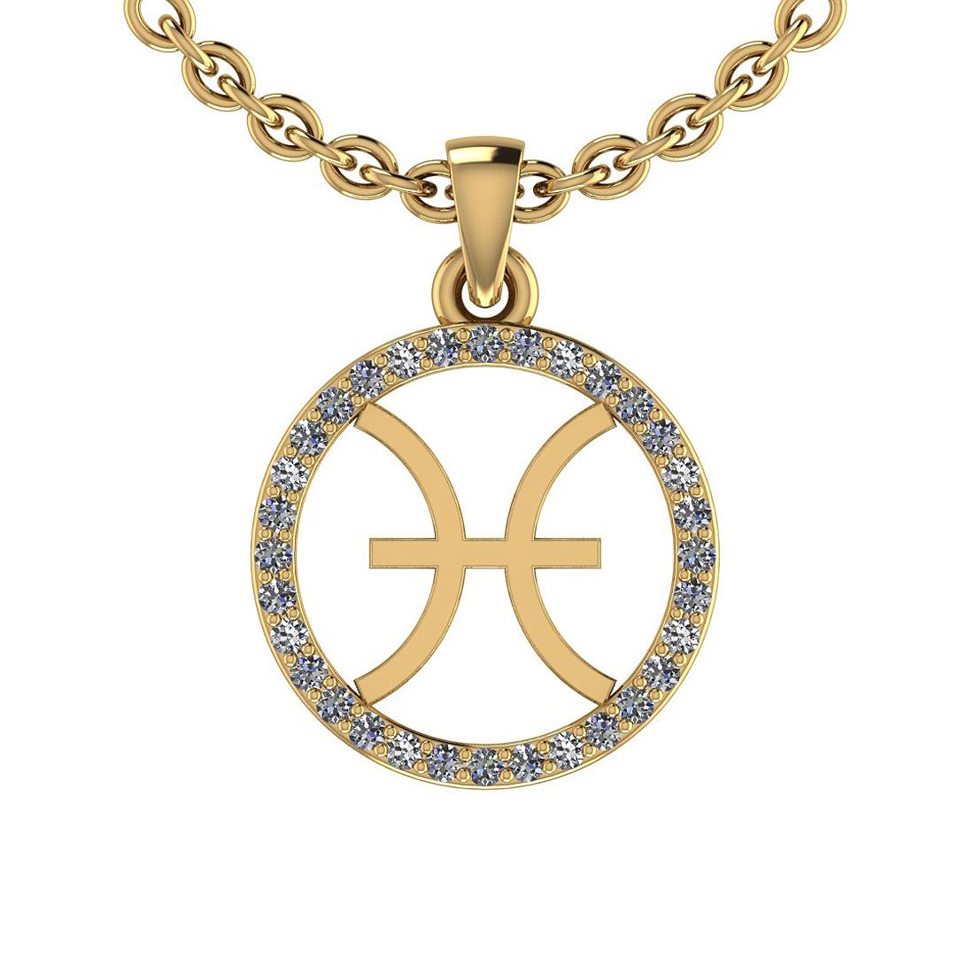 Certified 0.14 Ctw SI2/I1 Diamond 14K Yellow Gold Zodia **|**|** Center Diamond Approx Weight: 0.14 Ctw (Round Cut) Center Diamond Color: J-K Center Clarity: SI2/I1 Stone Setting: Prong Metal Approx Weight: 1.20 Gram 14K Yellow Gold Zodiac Pisces Pendant With Matching 1oz Silver Zodiac Coin