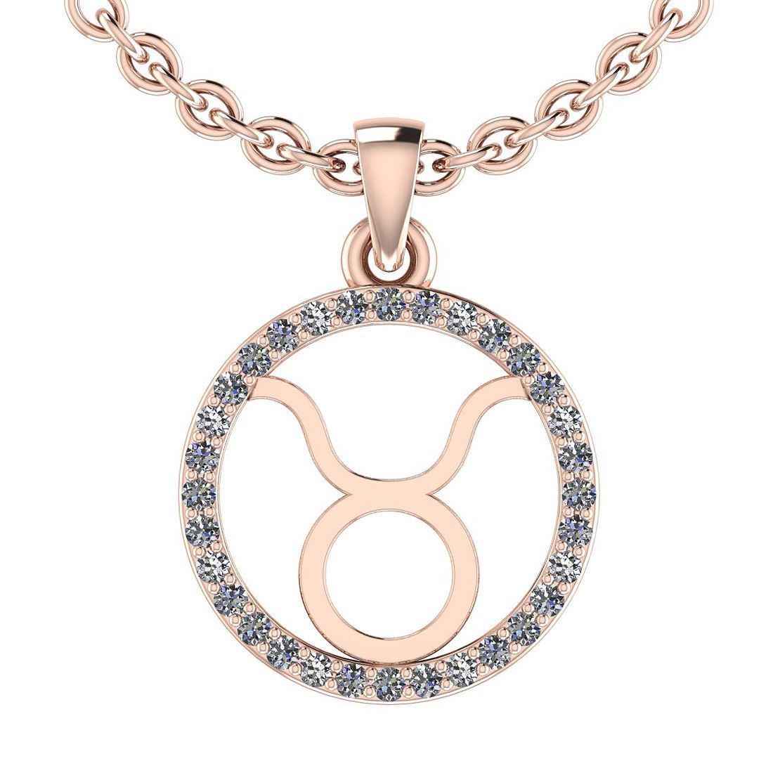 Certified 0.16 Ctw SI2/I1 Diamond 14K Rose Gold Zodiac **|**|** Center Diamond Approx Weight: 0.16 Ctw (Round Cut) Center Diamond Color: J-K Center Clarity: SI2/I1 Stone Setting: Prong Metal Approx Weight: 1.50 Gram 14K Rose Gold Zodiac Taurus Pendant With Matching 1oz Silver Zodiac Coin