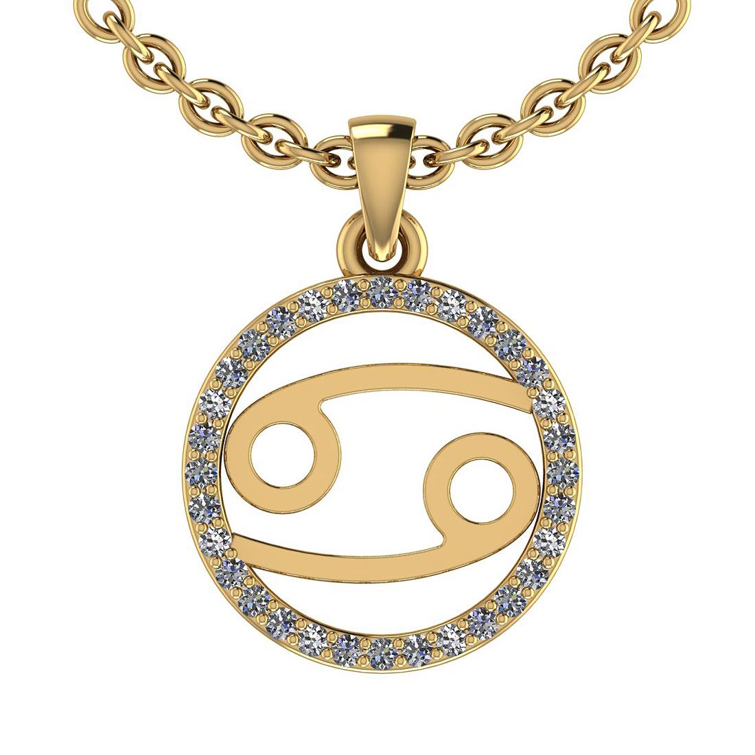 Certified 0.16 Ctw SI2/I1 Diamond 14K Yellow Gold Zodia **|**|** Center Diamond Approx Weight: 0.16 Ctw (Round Cut) Center Diamond Color: J-K Center Clarity: SI2/I1 Stone Setting: Prong Metal Approx Weight: 1.00 Gram 14K Yellow Gold Zodiac Cancer Pendant With Matching 1oz Silver Zodiac Coin