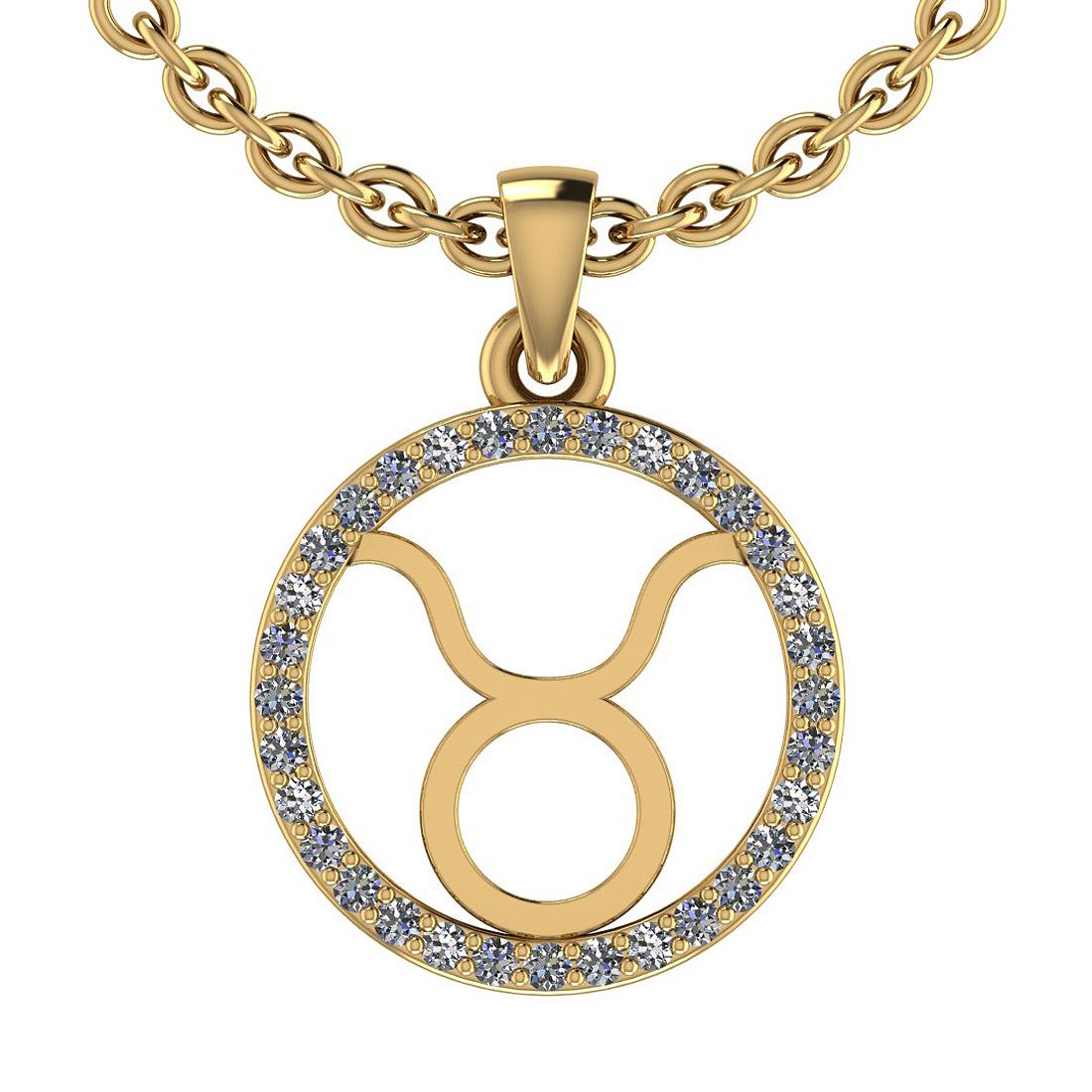 Certified 0.16 Ctw SI2/I1 Diamond 14K Yellow Gold Zodia **|**|** Center Diamond Approx Weight: 0.16 Ctw (Round Cut) Center Diamond Color: J-K Center Clarity: SI2/I1 Stone Setting: Prong Metal Approx Weight: 1.50 Gram 14K Yellow Gold Zodiac Taurus Pendant With Matching 1oz Silver Zodiac Coin