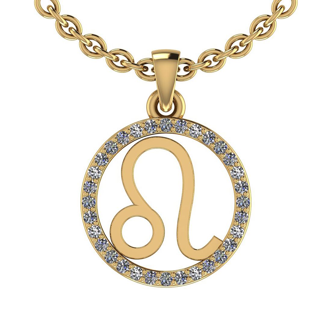 Certified 0.16 Ctw SI2/I1 Diamond 14K Yellow Gold Zodia **|**|** Center Diamond Approx Weight: 0.16 Ctw (Round Cut) Center Diamond Color: J-K Center Clarity: SI2/I1 Stone Setting: Prong Metal Approx Weight: 1.50 Gram 14K Yellow Gold Zodiac Leo Pendant With Matching 1oz Silver Zodiac Coin
