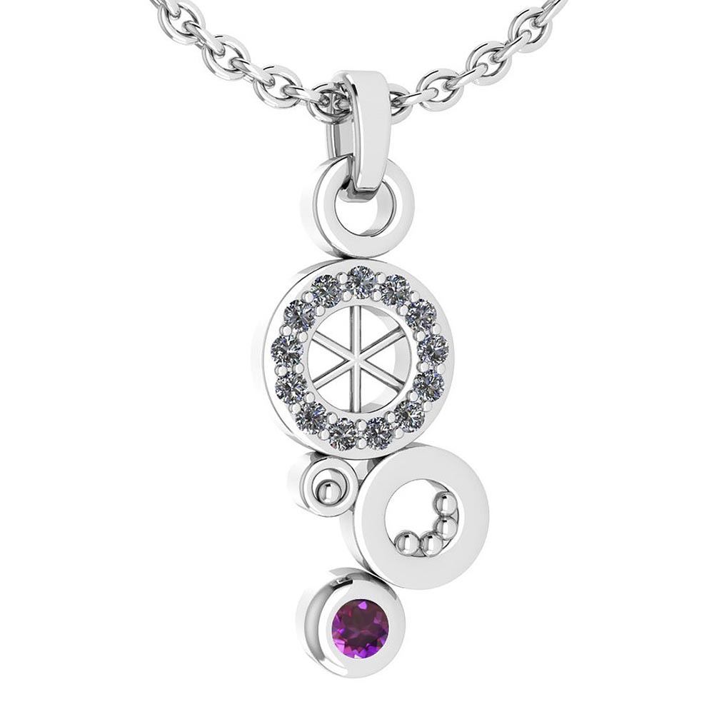 Certified 0.26 Ctw Amethyst And Diamond Octopus Styles **|**|** Center Stone Weight ; 0.08 Ctw (1 Pcs Round)Center Stone Color: Amethyst Center Stone Setting: Prong Side Stone (13 Pcs Round Cut Diamond) 0.18 Ctw Side Stone Color: White G-H Diamond Stone Clarity: VS/SI1 Center Stone Setting ; Prong Metal Weight: Approx 1.90 Gram 14K White Gold Pendant