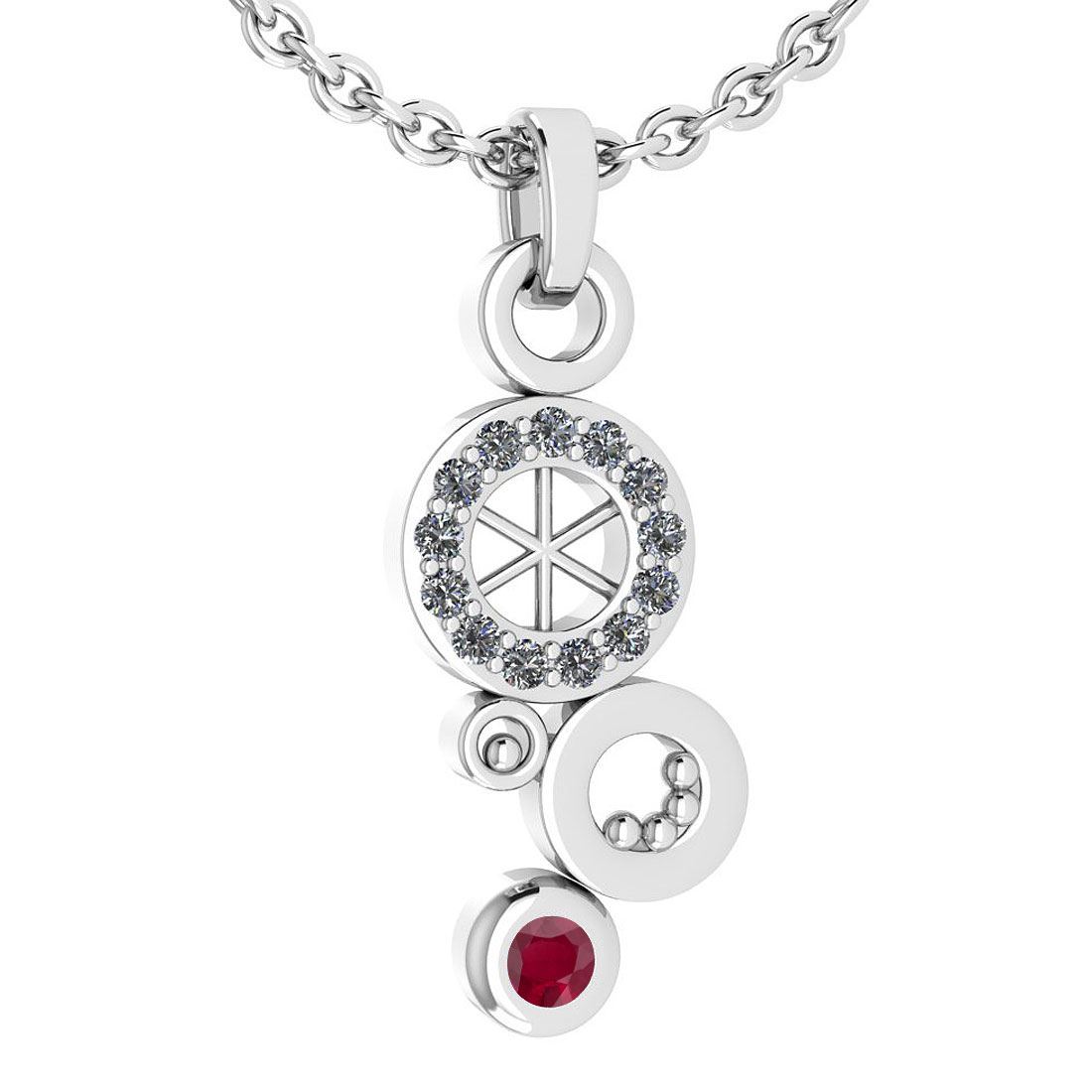 Certified 0.26 Ctw Ruby And Diamond Octopus Styles Pend **|**|** Center Stone Weight ; 0.08 Ctw (1 Pcs Round)Center Stone Color: Ruby Center Stone Setting : Prong Side Stone (13 Pcs Round Cut Diamond) Stone Weight Of Ctw 0.18 Ctw Side Stone Color: White G-H Diamond Stone Clarity: VS/SI1 Center Stone Setting ; Prong Metal Weight: Approx 1.90 Gram 14K White Gold Pendant