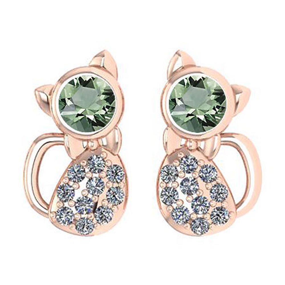 Certified 0.30 Ctw Green Amethyst And Diamond 14K Rose **|**|** Center Stone Approx Weight ; 0.20 Ctw (2 Pcs Round) Center Stone Color: Green Amethyst Center Stone Setting: Prong Side Stone Weight: 0.10 Ctw (20 Pcs Round Cut Diamond) Side Stone Color: White G-H Diamond Stone Clarity: VS/SI1 Center Stone Setting ; Prong Metal Weight Approx: 1.35 Gram 14K Rose Gold Cat Stud Earring