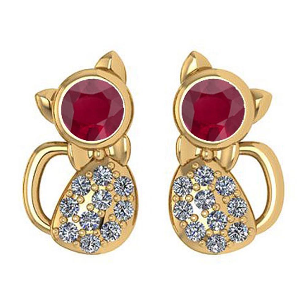 Certified 0.30 Ctw Ruby And Diamond VS/SI1 Cat Style Ea **|**|** Center Stone Weight: 0.20 Ctw (2 Pcs Round) Center Stone Color: Ruby Center Stone Setting: Bezel Side Stone Weight Of Ctw 0.10 Ctw (20 Pcs Round Cut Diamond VS/SI1) Side Stone Color: White G-H Diamond VS/SI1 Stone Clarity: VS/SI1 Stone Setting: Pave Metal Weight: Approx 1.85 Gram 1.40 Yellow Gold Stud Earring