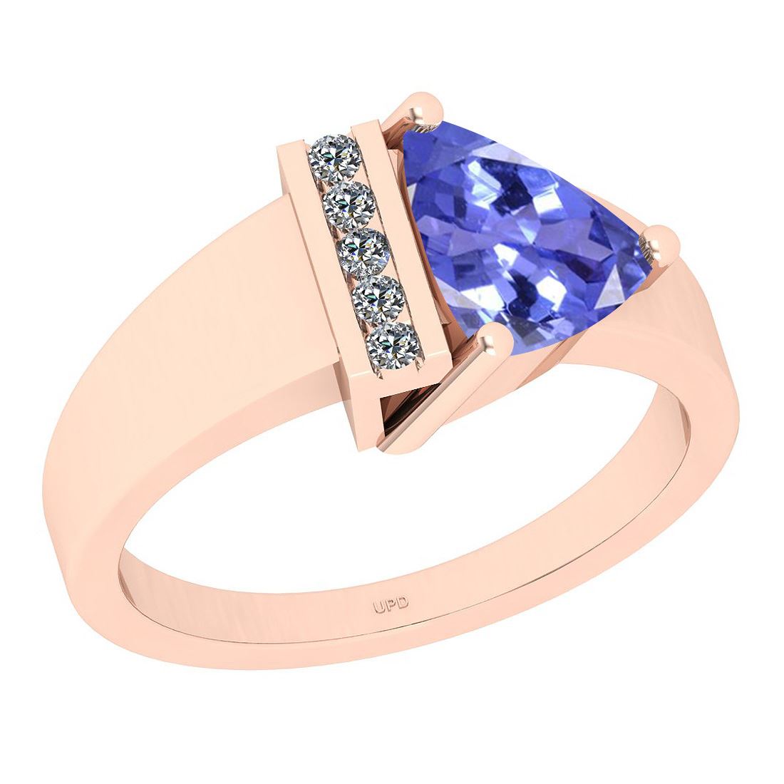 Certified 0.31 Ctw I2/I3 Tanzanite And Diamond 14K Rose **|**|** Center Stone Approx Weight: 0.27 Ctw (Trillion Cut) Center Stone Color: Tanzanite Center Stone Setting: Prong Side Stone 0.04 Ctw Side Stone Color: J-K Stone Clarity : I2/I3 Stone Setting: Prong Metal Approx Weight: 3.40 Gram 14K Rose Gold Engagement Ring Size: 6 (Free Sizing Avail)