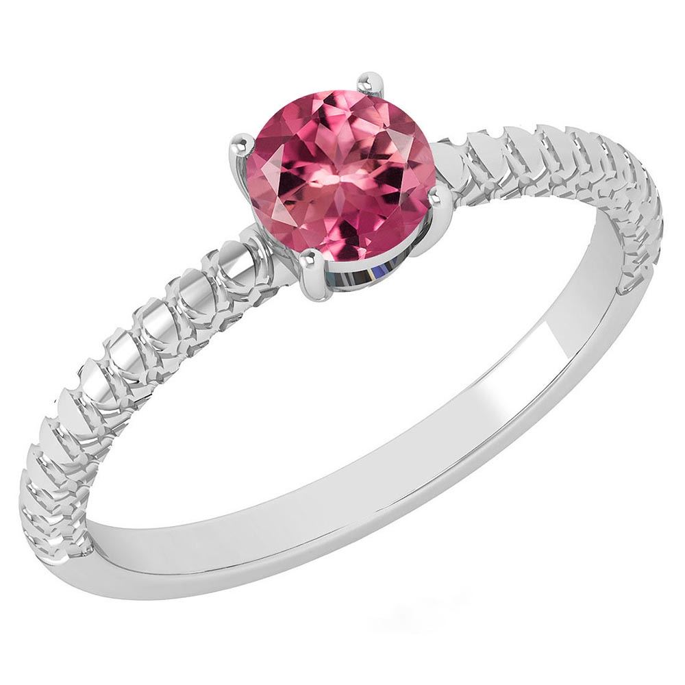 Certified 0.45 Ctw Pink Tourmaline Solitaire Ring with **|**|** Center Stone Approx Weight ; 0.45 Ctw (1 Pcs Round) Center Stone Color: Pink Tourmaline Center Stone Setting ; Prong Metal Approx Weight: 1.50 Gram 14K White Gold Solitaire Ring with Filigree Made In USA