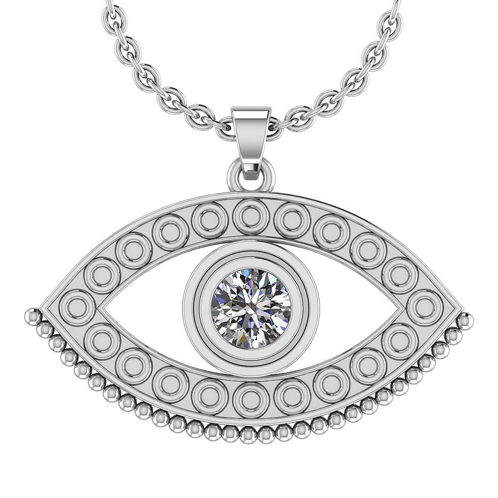 Certified 0.50 Ctw Diamond I1/I2 EYE StylePendant Neckl **|**|** Center Stone Approx Weight: 0.50 Ctw (1 Pcs Round) Center Stone Color: J-K Center Stone Clarity: I1/I2 Center Stone Setting: Bezel Metal Approx Weight: 5.00 Gram 14K White Gold EYE Pendant Necklace